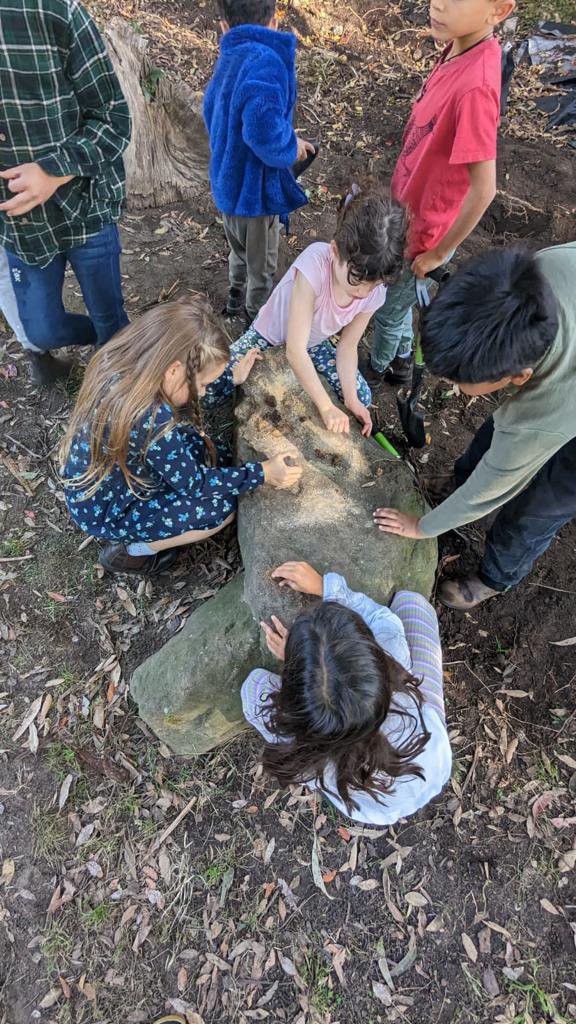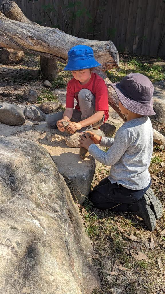 Indigenous peoples knew which rocks were needed by particular native shrubs and medicinal plants. Some may require iron and silica, others need copper or zinc. Our students learn to name the minerals in the rocks by sight - red colouring in a rock is iron, the black is basalt, the sparkle is silica as found in sandstone. They grind the rocks and sprinkle the dust around their favourite plants.