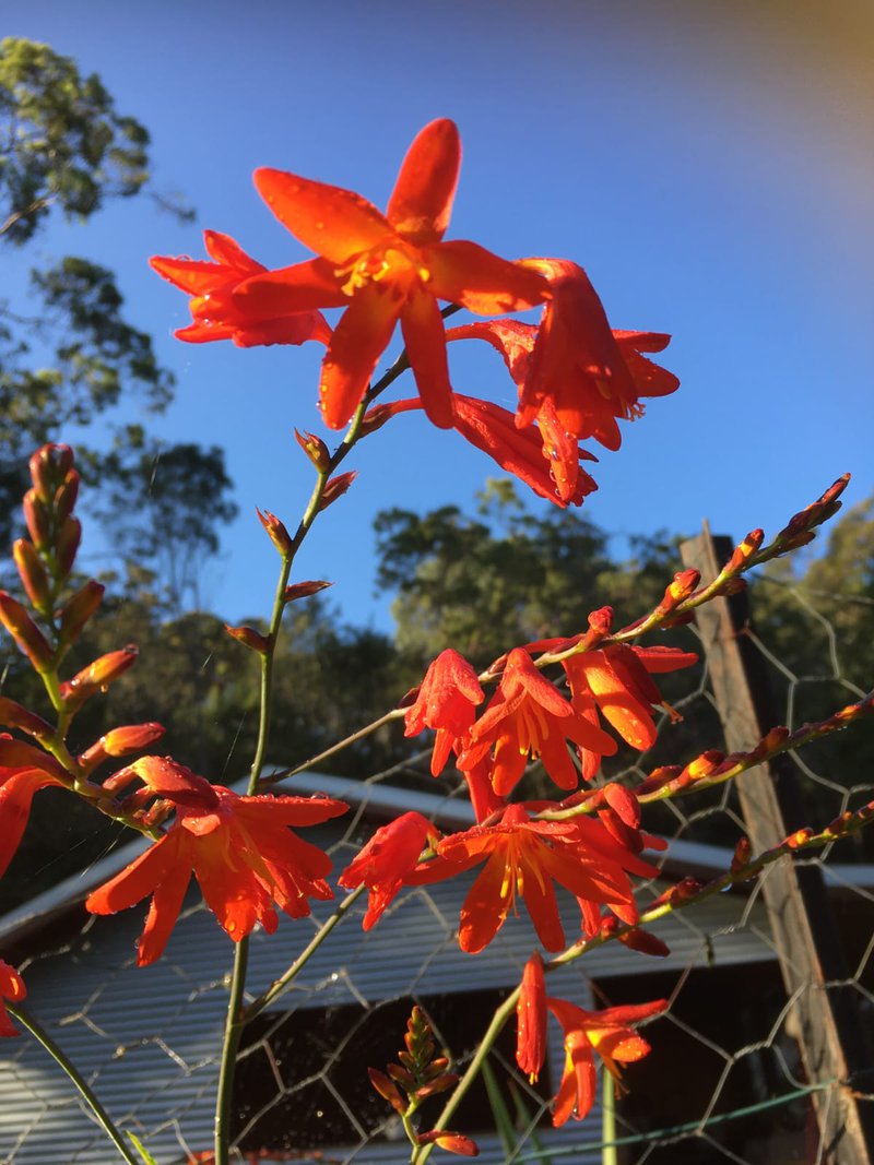 - Crocoseum (copper tips) with its delightful tall orange gladiola-like blooms, perfect in bouquets;