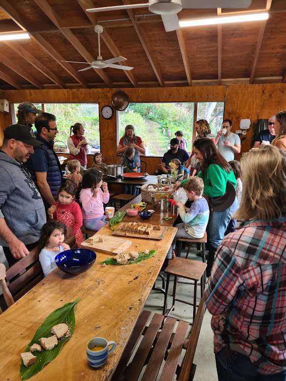 The morning wrapped up with everyone sharing delicious pumpkin soup, fresh sourdough bread, warm herbal tea, and an impressive tamarillo cake - all made by parents and Sandra using pumpkins, herbs and tamarillo fruits from the school gardens. While everyone feasted and the children played happily outside, Sandra hosted a Q&A in the garden classroom - and at home time, she offered families generous gifts of plants, mature biodynamic compost and the famous 'worm juice' for their own gardens or balconies.