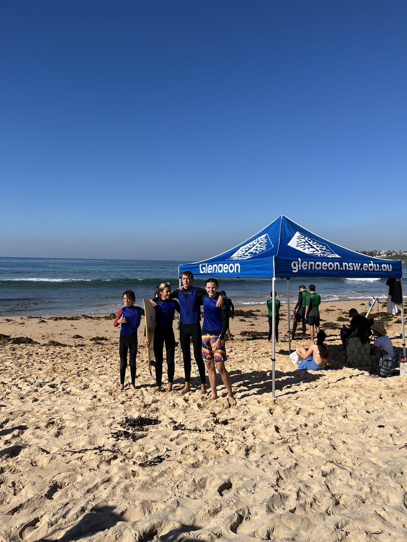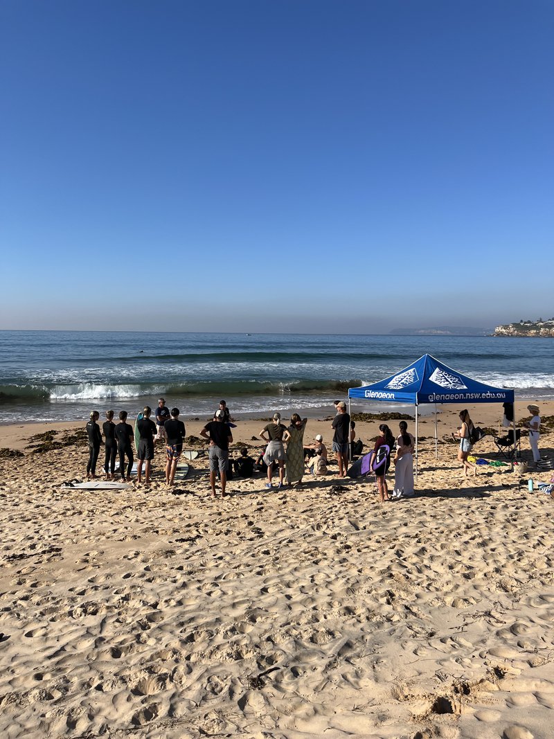 School holidays aren’t all about rest and recovery. Keen Glenaeon surfers took on the challenge of competitive surfing in the Inaugural Gleaneon Surf Riders Surf Tag Championships at Long Reef on the first Friday of the holidays. Surfers from Years 7-11 made up teams of four and surfed clean 2-3 foot waves in a relay event where each surfer rode two waves and was judged on their wave selection, manoeuvres, speed, power and flow. Their scoring waves added to their team’s tally.