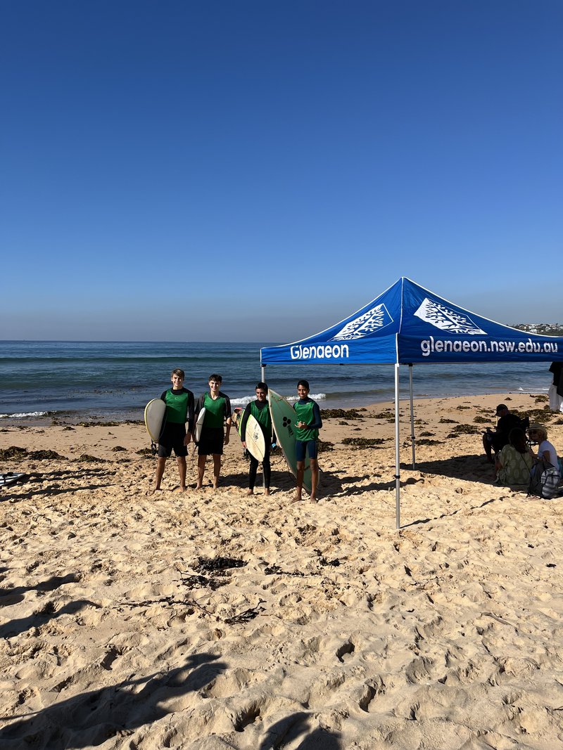 Blue team, made up of Tighe and Oscar from Year 8, Finn from Year 10 and Archie from Year 11, came away with the win after a decisive wave from Finn, who took off on the biggest wave of the session and managed a series of turns and a big re-entry off the lip, which impressed the judge. Huge thanks to Rob from Manly Surf School who judged the contest and to all the parents and students who attended. Any surfers keen to be involved in future Glenaeon Surf Riders competitions should see Coach or Kim and check the Sports Noticeboard for updates on surf sessions and upcoming comps.