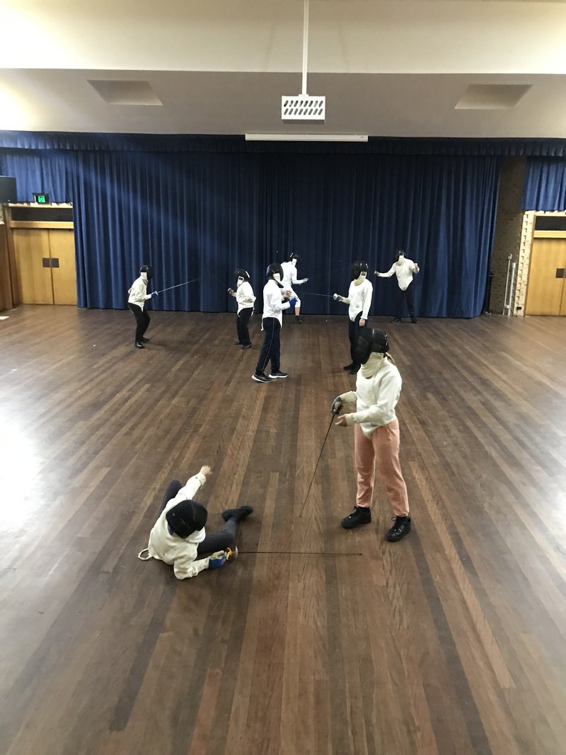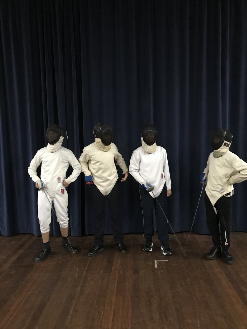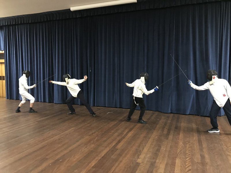 The Glenaeon fencers meet Thursday mornings in the hall under the stewardship of Coach Andrew S., a very seasoned coach who once coached the Polish female national team!