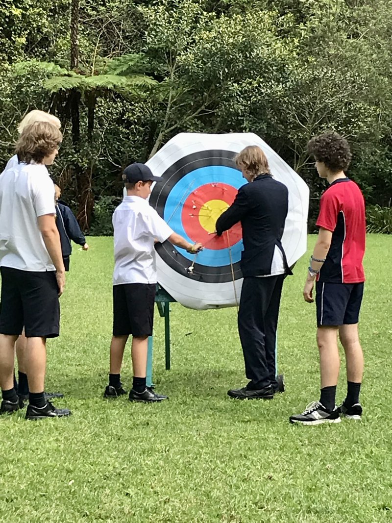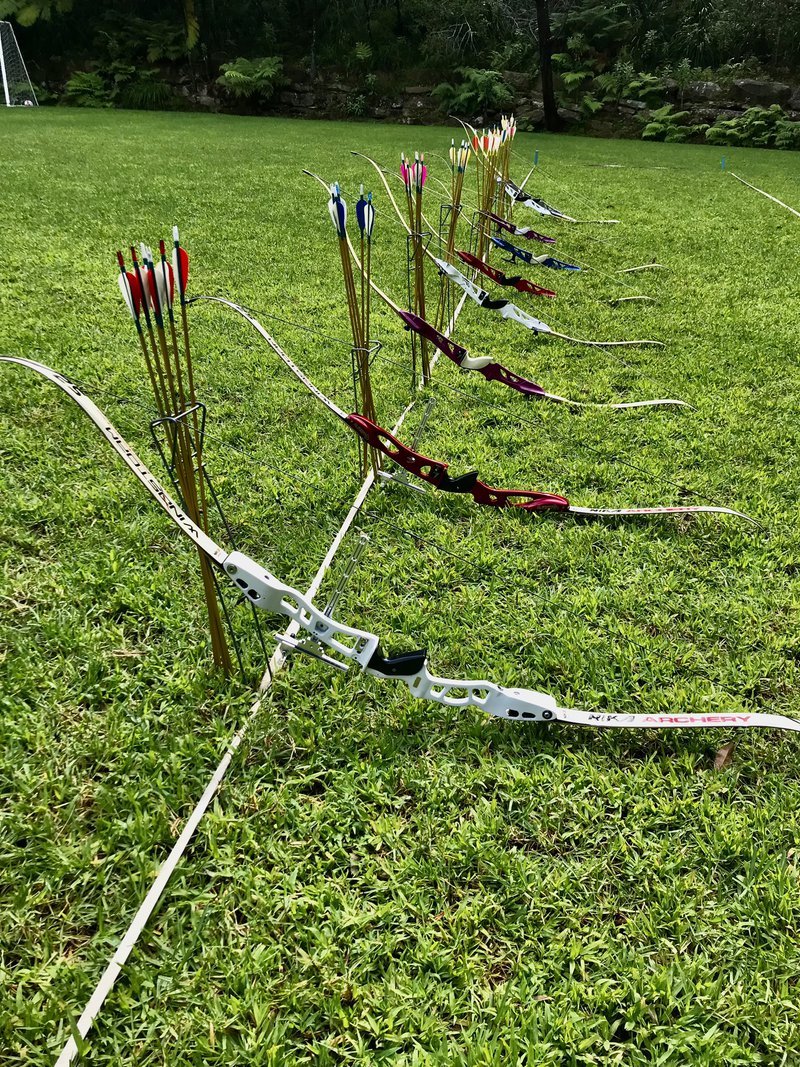 The archers meet on a Friday after school on the oval with Coach Simon to aim for accuracy and hit targets that move further away the better they get.