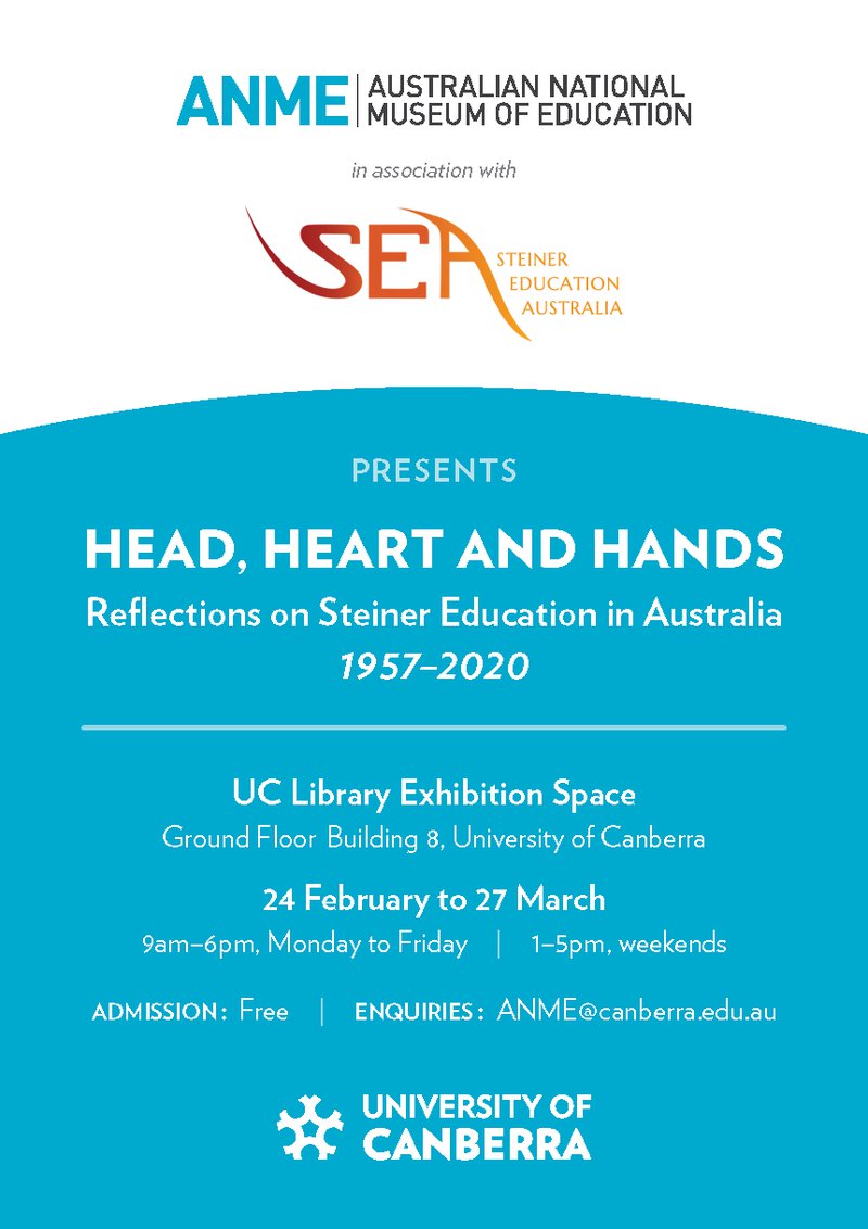 As the first Steiner School established in Australia in 1957, we are delighted to be a part of the Australian National Museum of Education's Head, Heart and Hands: Reflections on Steiner Education in Australia exhibition at the University of Canberra. Our own Glennis Mowday was present at the opening and spoke of Steiner education coming to Australia and the founding of Glenaeon. The founders of Glenaeon are the General Secretary of the Anthroposophical Society, Eric Nicholls and his daughter Marie Nicholls, who also travelled to Canberra as a special guest for the opening of the exhibition. The educational founder of the school was Sylvia Brose AO who began the school with three children one of whom was her neice, Linda St Clair (nee Laycock). Linda also travelled down to Canberra University as a guest for the opening.