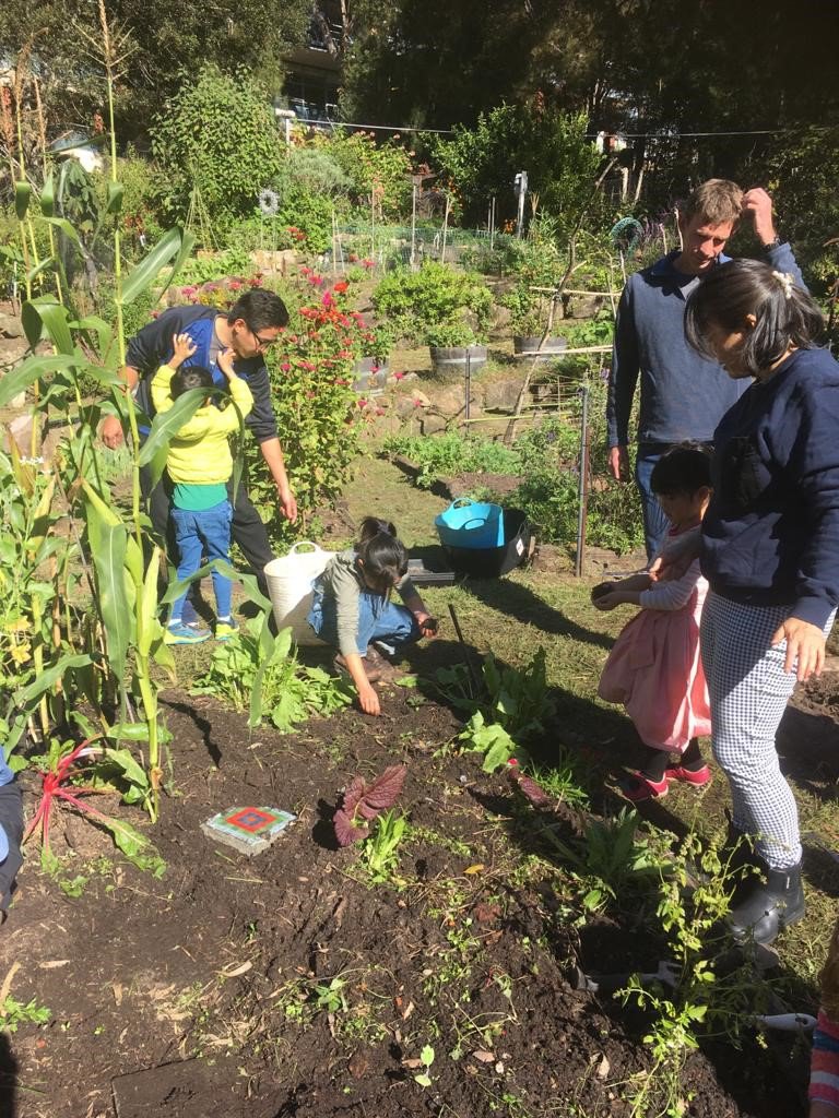 An enthusiastic group of young and old enjoyed radiant sun and inner warmth at a Parent Education event transforming one of the biodynamic garden beds at Middle Cove recently, with the practical guidance of Glenaeon gardening teachers Sandra and Kathy.