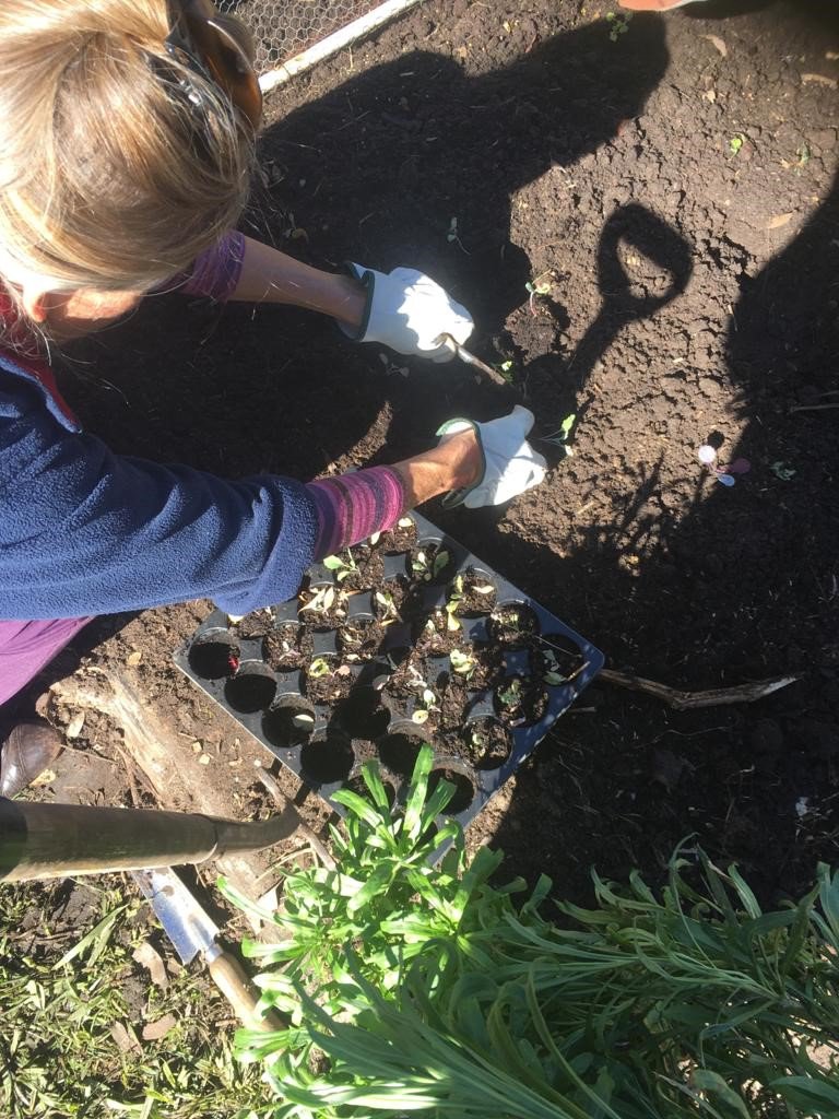 The gathered group weeded, pulled up plants at the end of their seasonal flourish, for composting, turned the soil, transplanted some good companion plants from other beds, and planted seedlings Kathy had nurtured until participants settled them into their new homes and bedded them down with a drink. The group completed their morning session sharing delicious home-baked sourdough by Sandra and enjoyed Kathy’s herbal tea. The group were even gifted overflowing parsley and cress to take home for their own gardens. A happy and satisfied team took off home to continue some gardening there, and are now waiting in the wings to hear what may be springing into garden community life next term!
