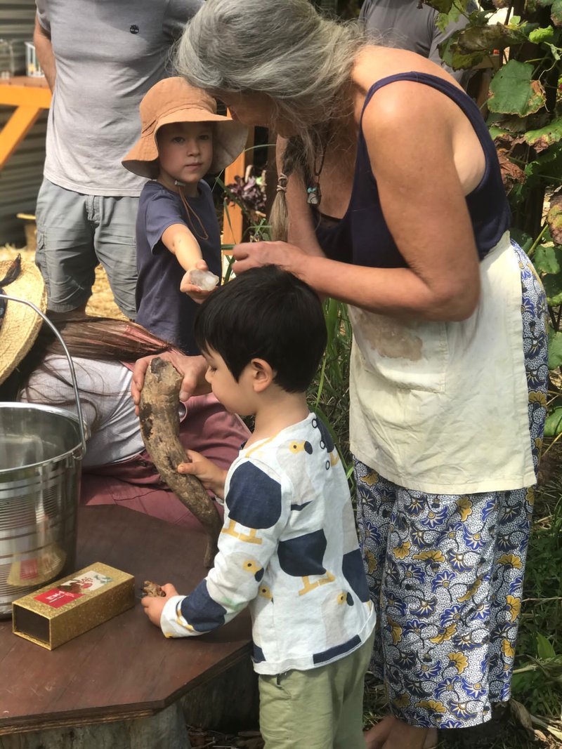 Families recently gathered together in the Middle Cove biodynamic garden with garden teachers Sandra Frain and Kathy Thangathurai for the Parent Education event, "Harvest Gratitude". The group discovered the abundance of beauty growing in the garden by creating their own fresh cut arrangements. Participants of all ages learned about the importance of living soil, how to use their senses to identify its health and some ways they can care for their soil. We enjoyed some practical garden activities and shared a morning tea of homemade herb tea and sourdough bread. We all had a wonderful morning together in the sunshine, reconnecting as a community to learn together and appreciate nature's gifts including the chorus of chickens!
