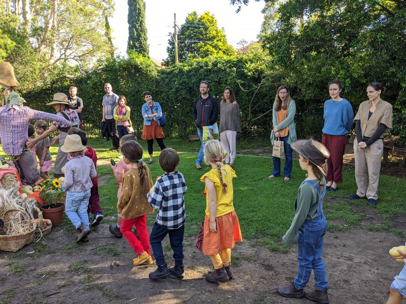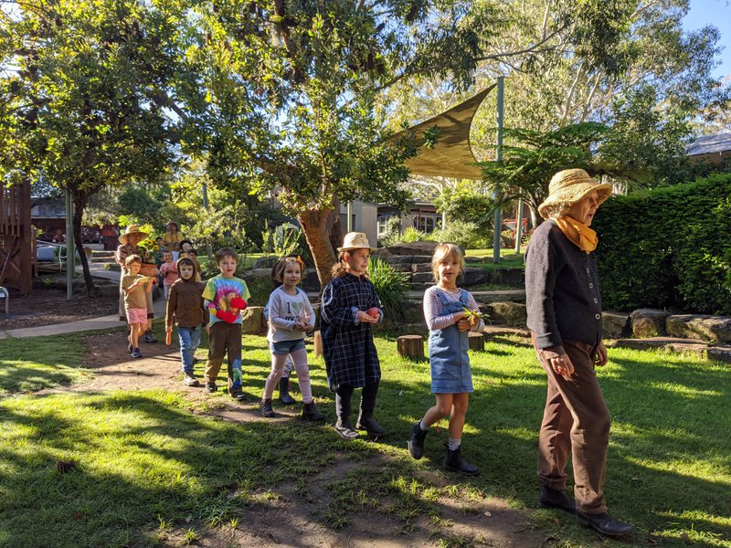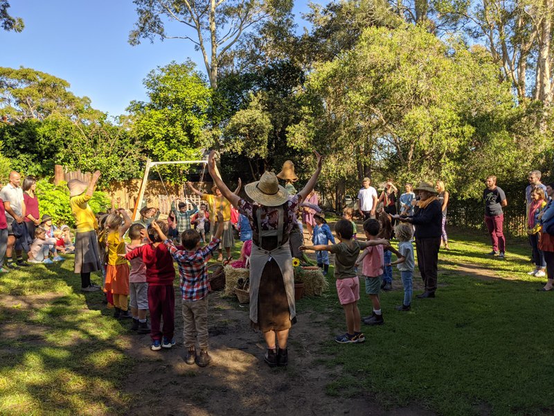 This year Kindergarten celebrated a socially-modified Harvest Festival thanks to COVID-19. The children brought their offerings of fruit and vegetables and surrounded the scarecrow to sing their Harvest Songs together. Parents formed a 'no-hand-holding' wide circle around the children and we all enjoyed one of the last gatherings until we are able to be back together again.