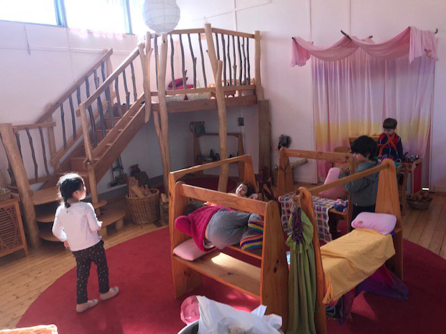 One day this week, Little Kindy children all felt sleepy. They decided to make beds for themselves, "Let's make hospital!" Realising they had already played hospitals last week, they made a Hotel instead, which of course, is full of beds! They were delighted they had single beds, bunk beds and even a bed for their teacher Junko Nicholls. Realising they were all getting hungry, the 'chef' of their hotel took special orders: mashed potato, roast chicken and veggies served straight from the Little Kindy kitchen!