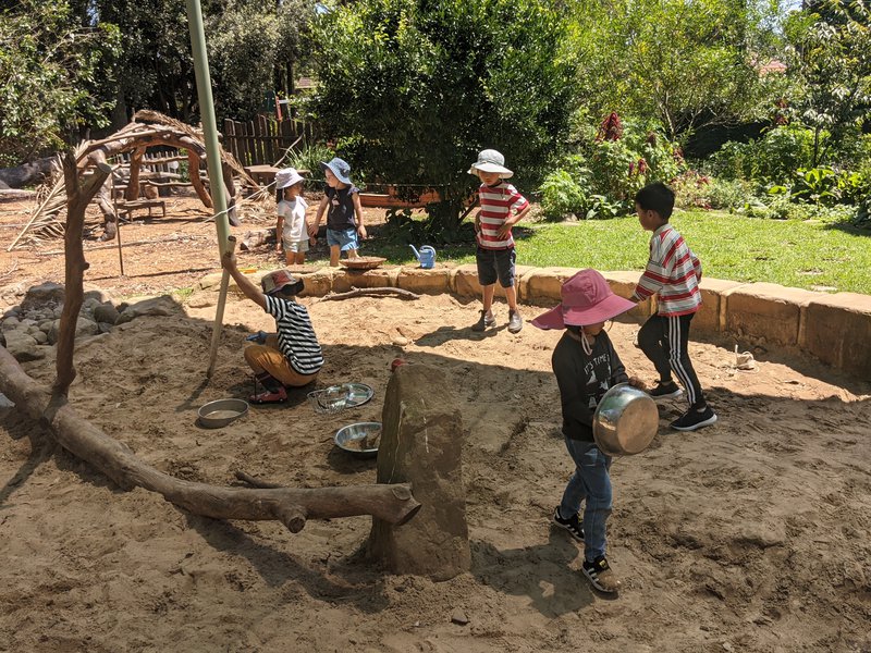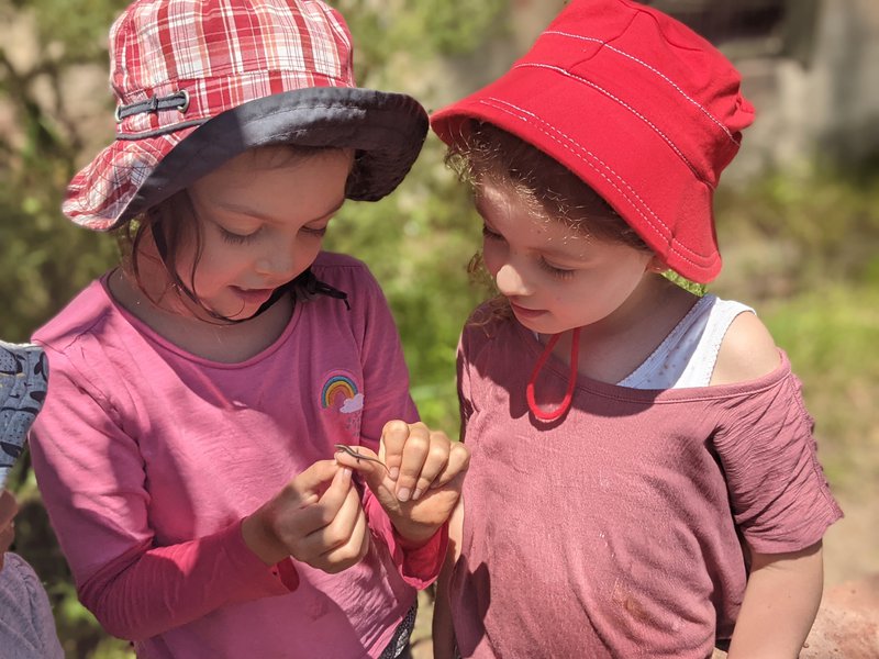 Kindergarten children have had a lovely time this week exploring their special places in the playground, digging, playing in the water, building cubbies and finding many small insects to watch and talk about. The flow form fills with water on warm days, buckets and spades are carried from the 'Kindy Shed' and the children enjoy their outside time together enormously.