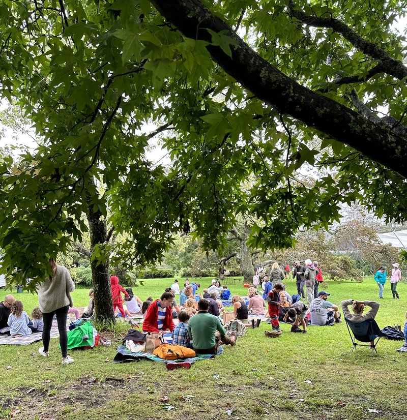 Kindergarten families and teachers gathered at Cedric's Apple Orchard in the Blue Mountains to celebrate the Harvest Festival. We filled our baskets to the brim with lots of juicy apples and then spread our picnic blankets under the old oak tree to share good food and company. And as the rain clouds dispersed, much to the delight of the children, Farmer Cedric rode on his 'tractor high' and they 'jumped on the trailer and went for a ride'.