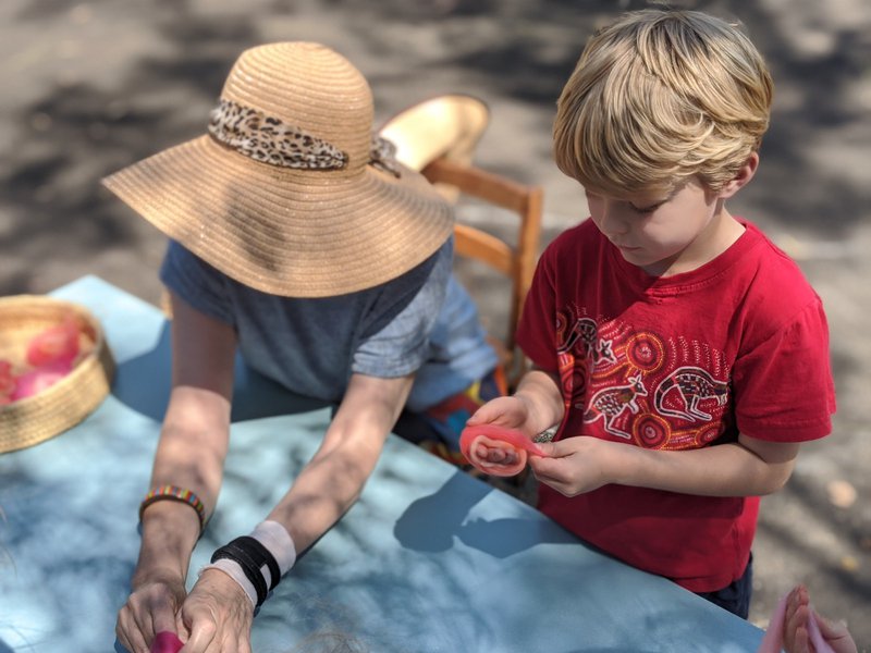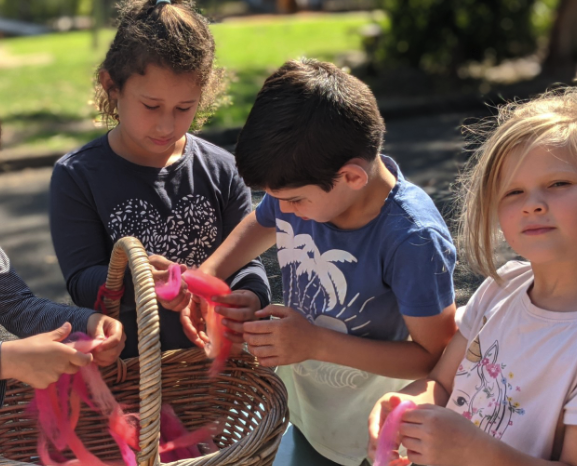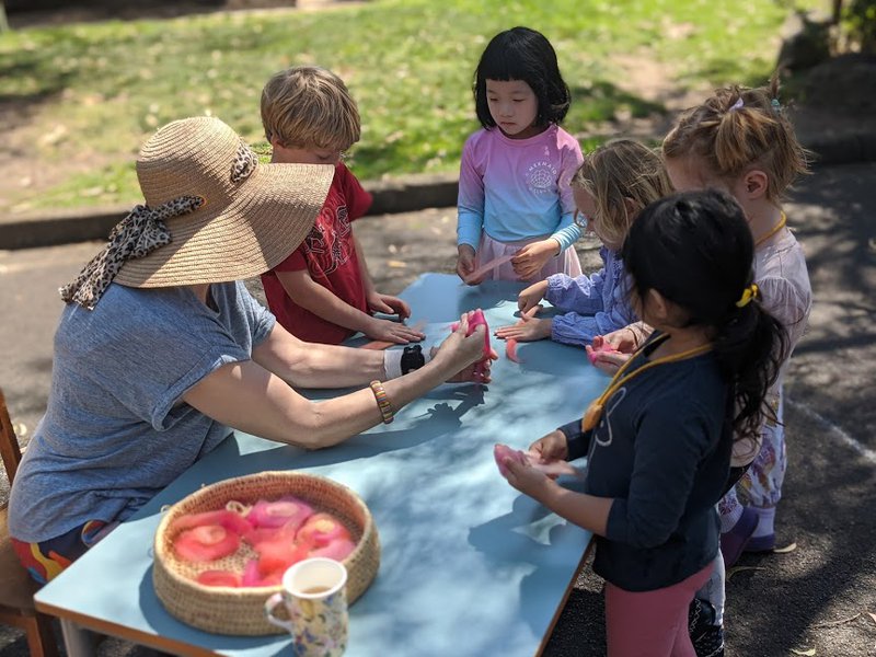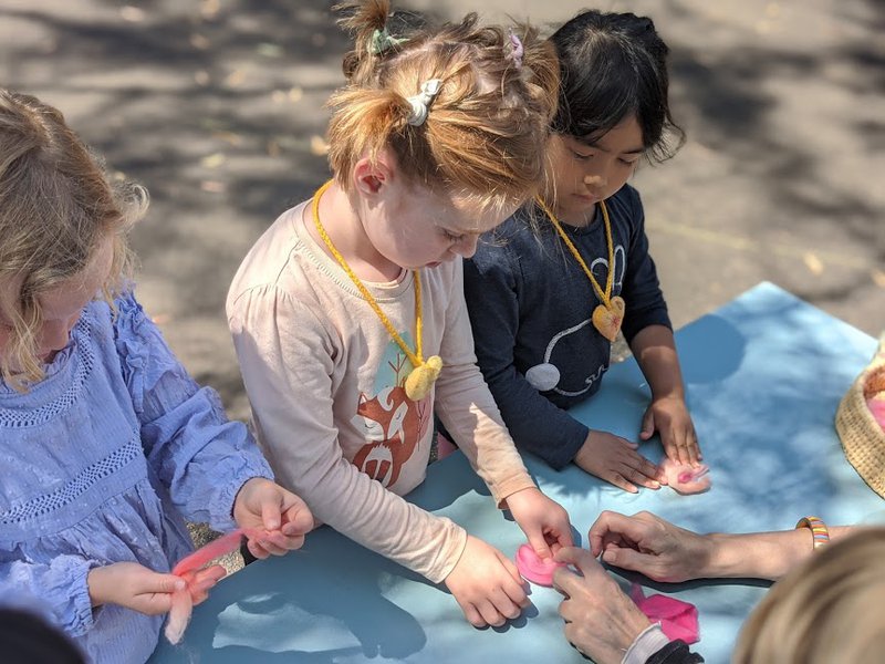 Guided by wonderful felter Christine Wiltshire, Kindergarten children have made the most beautiful wet felted piece called "Floating Blossoms" with an exquisite turquoise background. Using soft fleece roving, they carefully formed the blossoms and placed them on the pond, before felting them together. The colours and final piece is stunning. This piece is Kindergarten's contribution to the Silent Auction items, available for sale through the Glenaeon Art Show. https://www.glenaeonfair.com/silent-auction