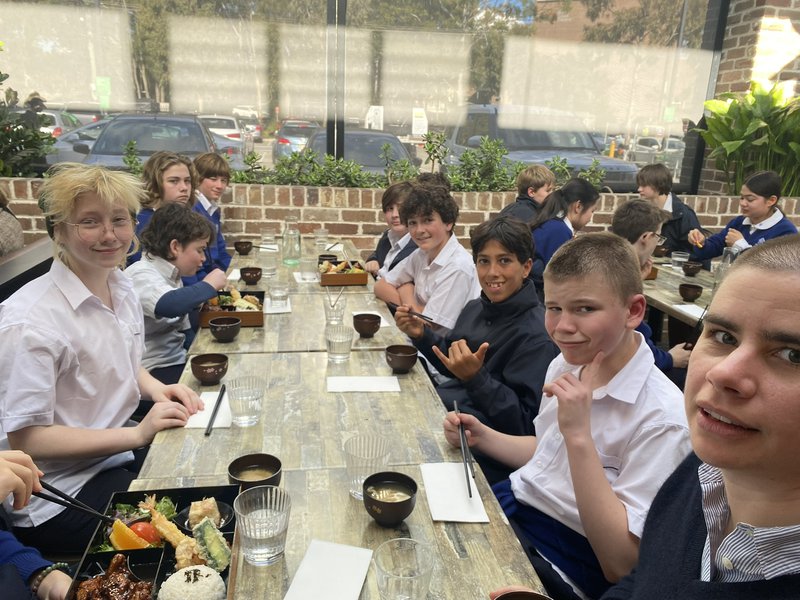 Last term, our high school Languages students enjoyed participating in excursions where they sampled traditional food from Japan, Germany and Spain. Our Year 9 and 10 Japanese students visited the The Japan Foundation in Chippendale to participate in workshops and share lunch together. This non-profit cultural organisation was established by the Japanese government to promote cultural and intellectual exchange between Japan and other nations. The students enjoyed a Japanese lunch at IPPUDO where they chose their meals like Ramen and Bento from the menu by ordering in Japanese language.