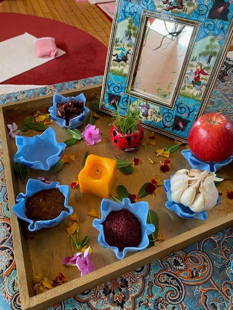 Little Kindergarten recently enjoyed a double cultural celebration. March 21 was the Persian New year and we celebrated this special occasion with the traditional story of Amu Nowruz and Nane Sarma (also known as Grandma Frost). Nane Sarma eagerly waits for her beloved Amu to visit as he does once a year in the beginning of the Spring, however she falls asleep preparing things and the kind-hearted Amu Nowruz did not want to wake her. Instead, heleaves flowers in her hair, ate half of the apple and drank some of the tea she prepared, before continuing his journey.