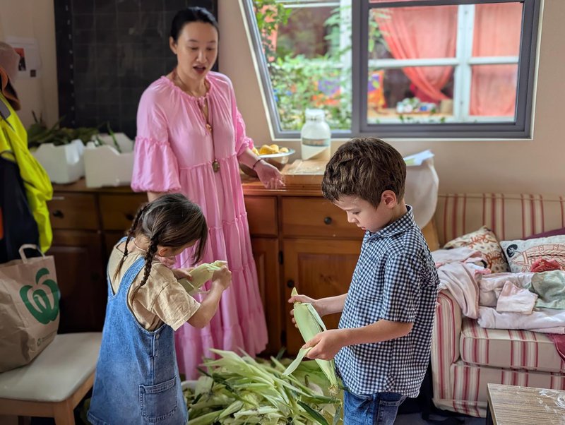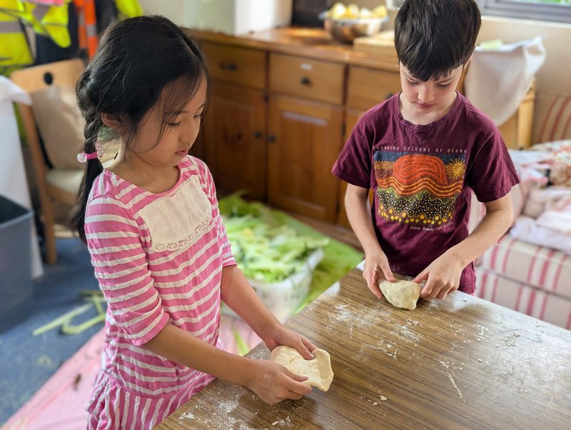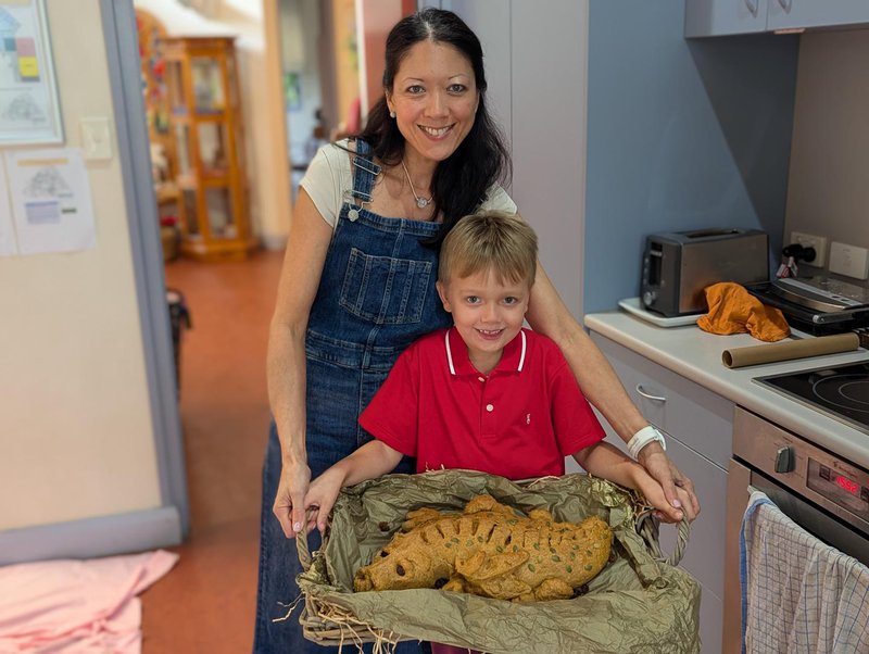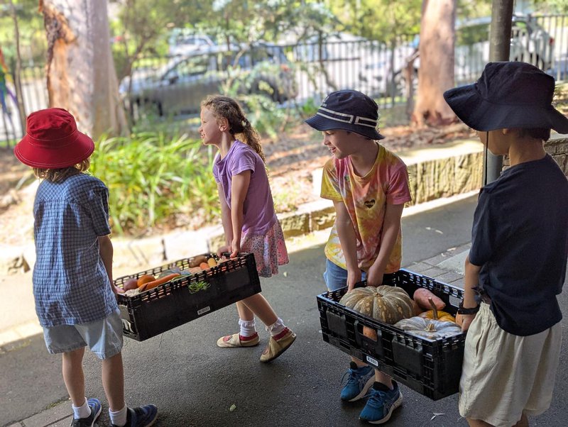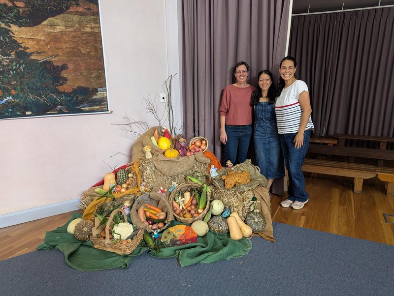 Class 1 and 2 students prepared over 200 bread rolls and 60 cobs of corn to enjoy while hosting the entire Primary School for the Michaelmas Festival. Earlybirds Clair, Melony, Sally and Maria and their children came at 7am to start making the bread – kneading and rolling 10kg of flour! Class 2 parents and children spend the morning rolling baking the rolls. Parent and baker Carolina made an amazing Dragon Bread for the Festival display which Class 1 and 2 shared! The Harvest display, with the woven ‘Horn of Plenty’ and corn husk dolls, is created by Class 1 and 2 parents using the abundant produce donated by our families. Our generous families donated such beautiful produce for our Harvest Festival, and we donated this to Oz Harvest to distribute to charity kitchens and those in need. Children enthusiastically helped pack and carry the produce to the truck with strong muscles and big smiles. Thank you to all of our lovely families who donated.