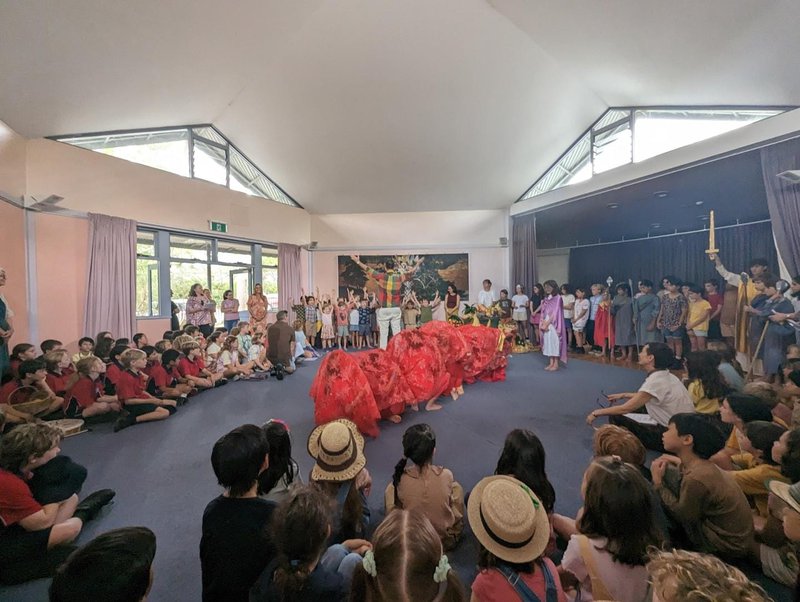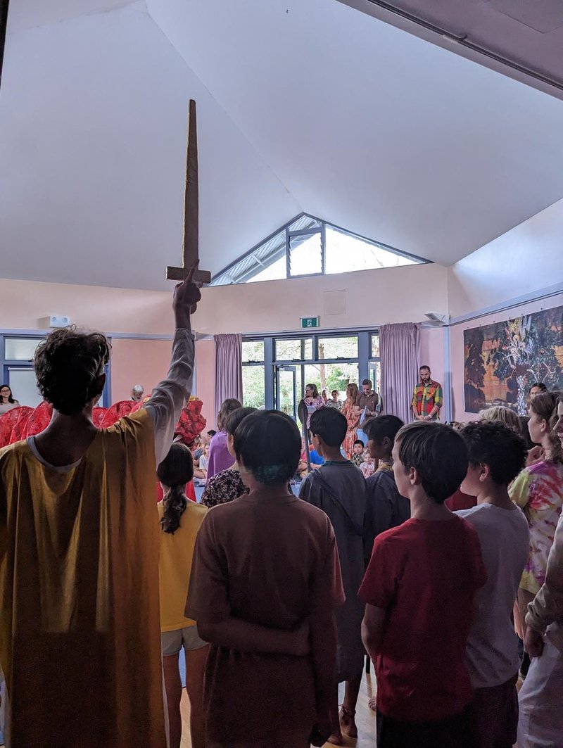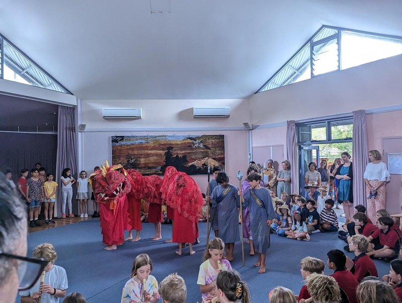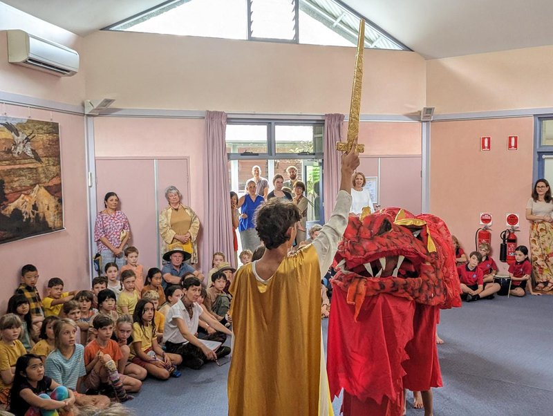 Earlier this month, the primary school classes came together at our Castlecrag campus for the festival of Michaelmas - midway between the summer and winter solstices. The play follows the story of a fiery dragon who scorches the crops and threatens the lives of a group of humble villagers who appeal to their wise king for assistance. They are eventually saved by the mighty St Michael, who slays the dragon with his powerful sword! This story plays out annually at our Primary Harvest Festival – through song, verse and movement. The children shudder at the fearful dragon, sing of St Michael’s strength and at the end, enjoy the bounty of the harvest saved - corn on the cob and delicious bread rolls!