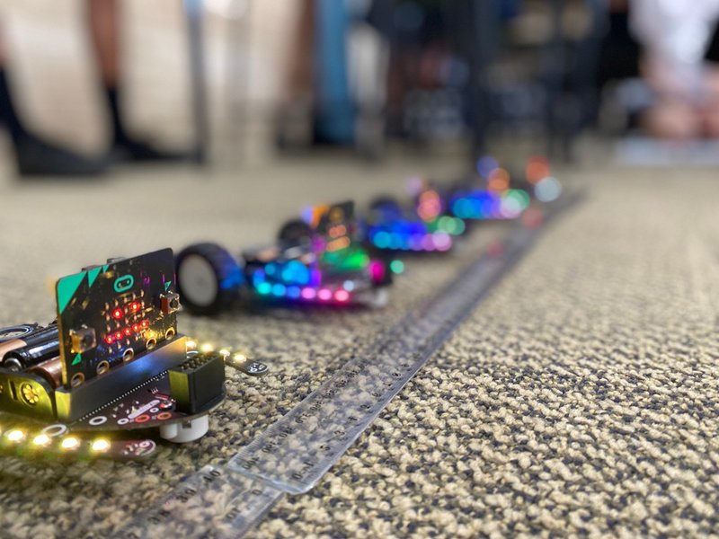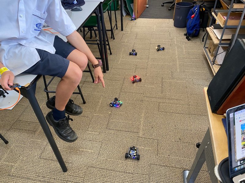 More recently students have coded a Bit Bot Car. George’s class participated in the Bit Bot World Championships (photos below). Students programmed a remote control and had great fun racing their Bit Bot Cars around the classroom!