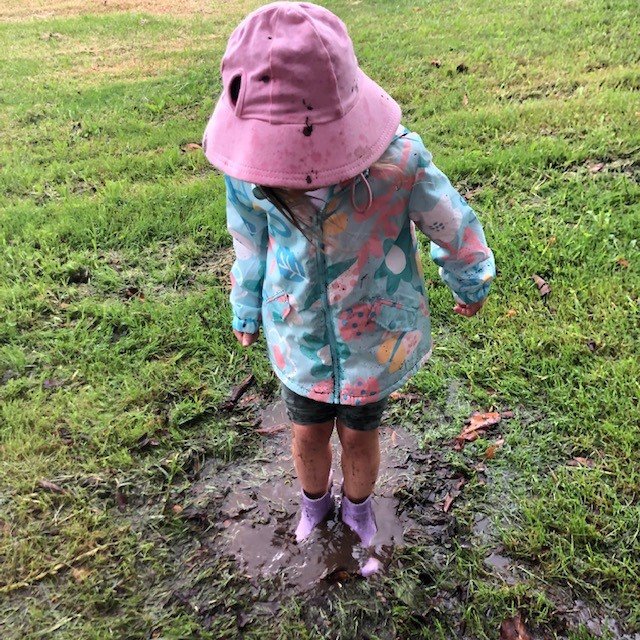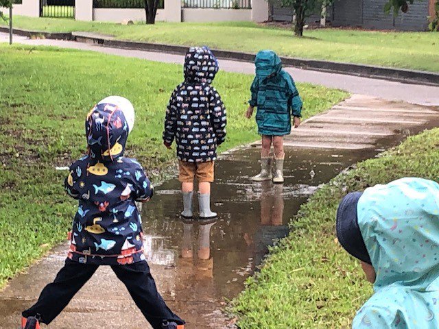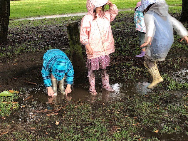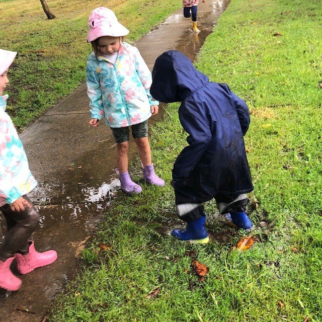 Our Glenaeon Preschool children enjoyed adventuring to the nearby park adorned in raincoats and gumboots, essential items for rainy play.