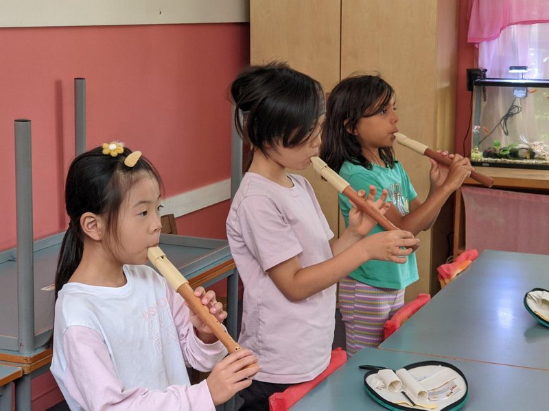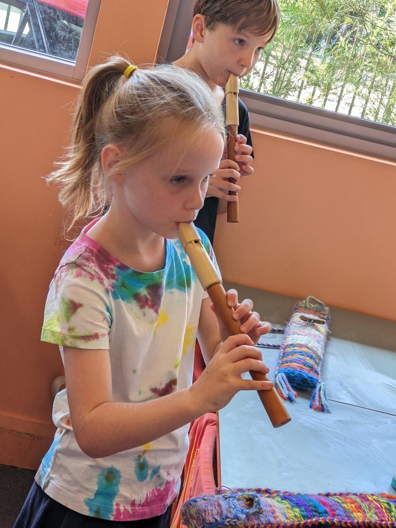 Class 1 & 2 have been playing recorder - a welcome sound after two years of restrictions to wind instruments. The merry sound of tunes and notes travels across the campus each morning and children enjoy learning through the bird names for each letter - Bluebird, Albatross and Galah.. Care is taken with these beautiful wooden recorders, as they are cleaned and packed away each time.