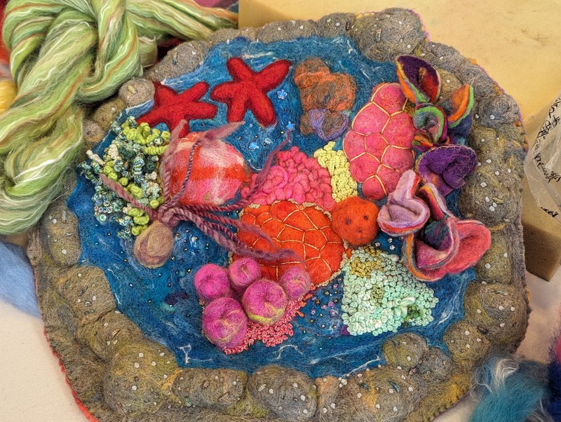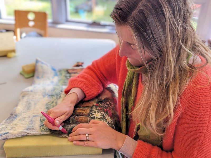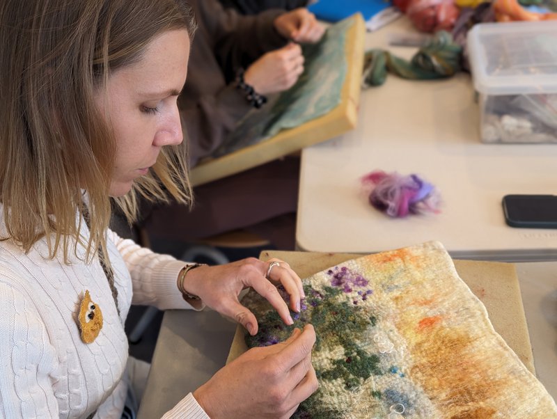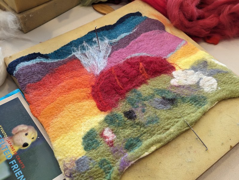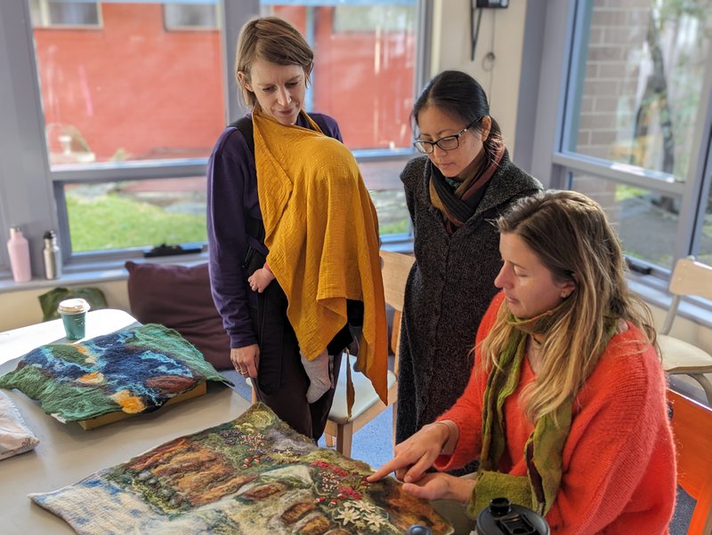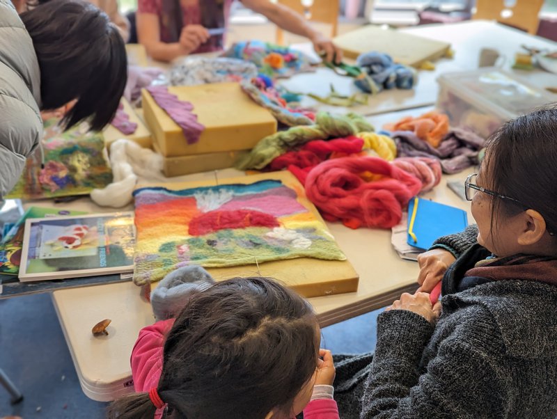 Parent Craft families shared a workshop with talented felter Erika Hosoyama, who taught them the wonderful art of dry needle felting. Taking the beautiful wet felts made with Yuki Tomashima in the last workshop, Erika showed people how to work with the images, textures and different fibres to create 3D effects and bring the flat felts to textured life! Adding fibres, colours and forming the imagery using dry needling allows an artist to create more detail and effects, as well as shapes and forms attached to the pieces. We are so lucky to have these wonderful crafters amongst our parent group, and a warm thank you to Charlotte Fayle, our Craft Coordinator for this year!