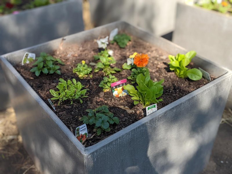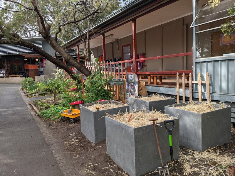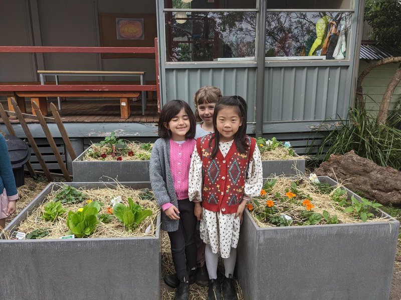 There is a beautiful new garden bed at our Castlecrag Campus, already brimming with vegetables, herbs and flowers! Some wonderful garden pots were donated by a generous school family and the children, with Gardening teacher Sandra Frain have transformed the area into a beautiful and bountiful garden! The children worked to dig and clear roots before planting potatoes, garlic, spinach, tomatoes, lettuce, herbs and delightful flowers! Watch these pots for further transformation as we paint and mosaic them with our own designs. A huge thank you to the Maintenance team and Sonny for building this wonderful bed for us!