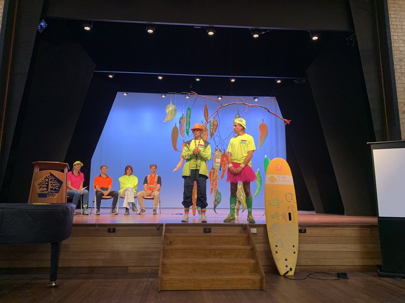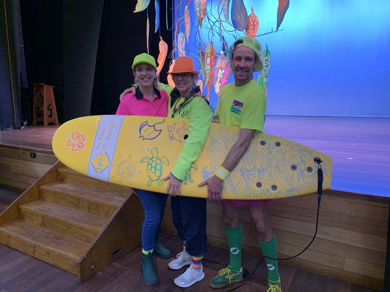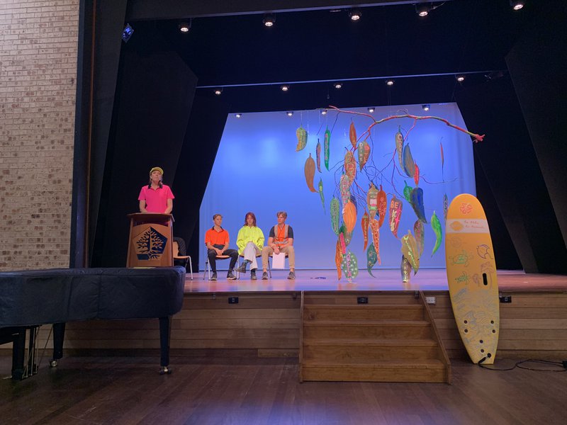 OneWave founder, Grant Trebilco was unfortunately unwell and couldn't make it to present at assembly, but Teachers Donna Miller and Jonas Stoebe took to the stage on his behalf. Donna shared a very personal story about OneWave's involvement in her daughters mental health journey.