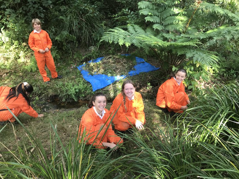 Our thanks to Year 7 & 8 students Catina, Michaela, Finley, Ava, Hayden, Felix, Ria, Archie, Henry, Mia B, Mia W and Sam for taking part. Our students got into the bush regeneration work suits and showed our visitors the type of work they have been doing, pulling noxious weeds, clearing rubbish from upstream.