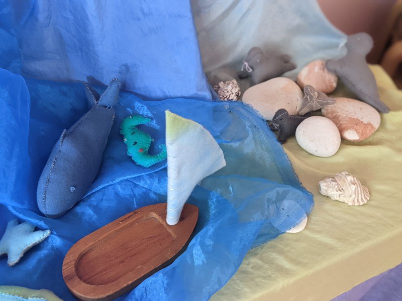 Kindergarten is a special place and much care, thought and meaning is given to the surroundings, equipment and spaces in which the children play. The environment is beautiful, warm and welcoming, inviting open-ended creative play, whilst also nourishing aspects of play such as sorting, counting, building and much social engagement. The Kindy day starts with Outside Play, before moving inside into Morning Circle and then Inside Play. These beautiful play spaces come alive as toys, objects and furniture become trains, planes, houses, gardens and play spaces; endless sessions of creative and imaginative play. They also grind grains for cooking, bake and prepare food each day. A strong rhythm is held by the teachers, which also includes the children tidying up and putting everything away again, ready for tomorrow. This week the children made beautiful woollen pom-pom mice!