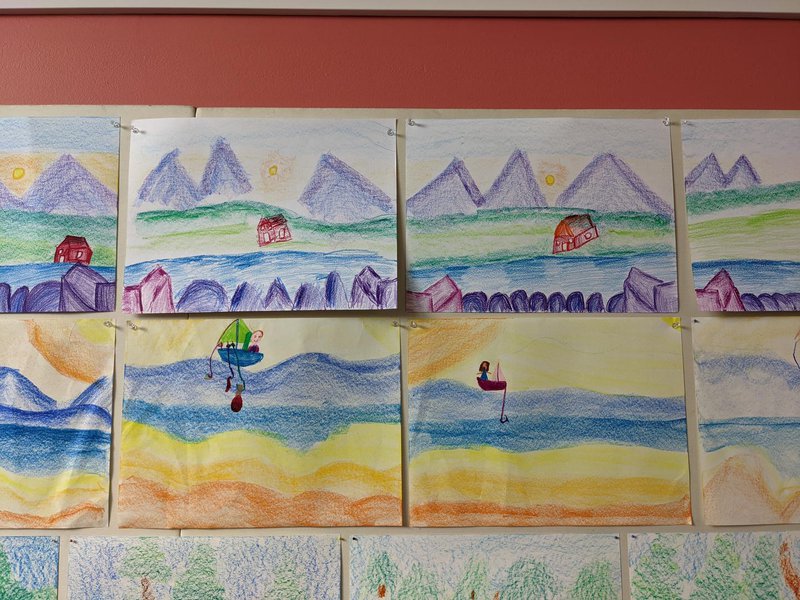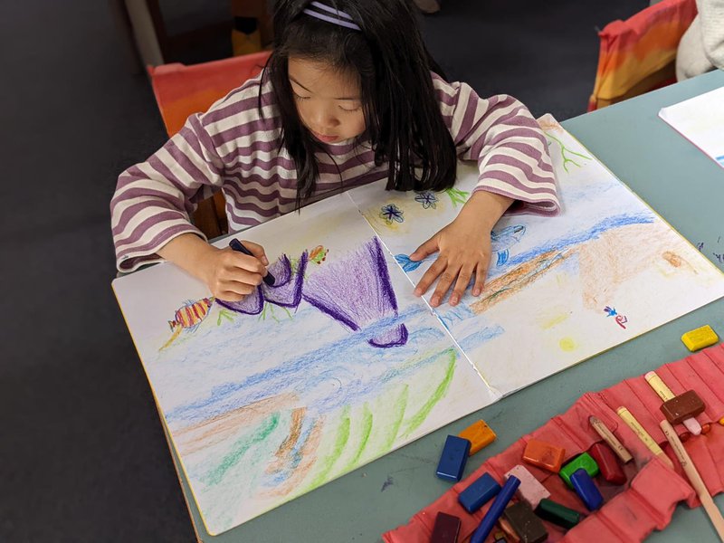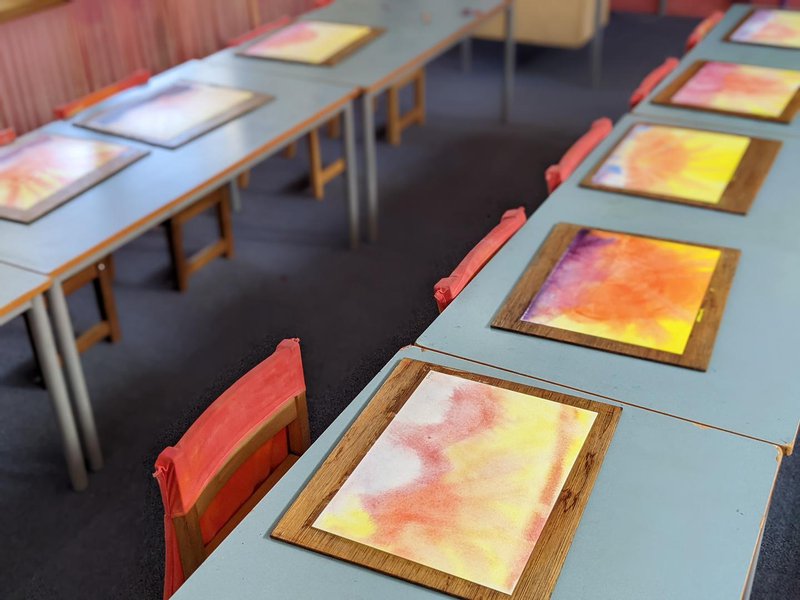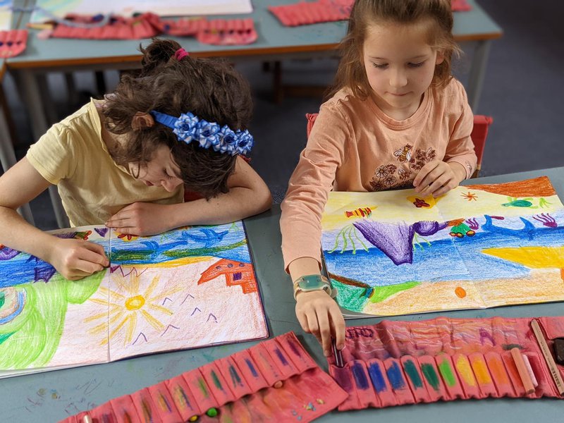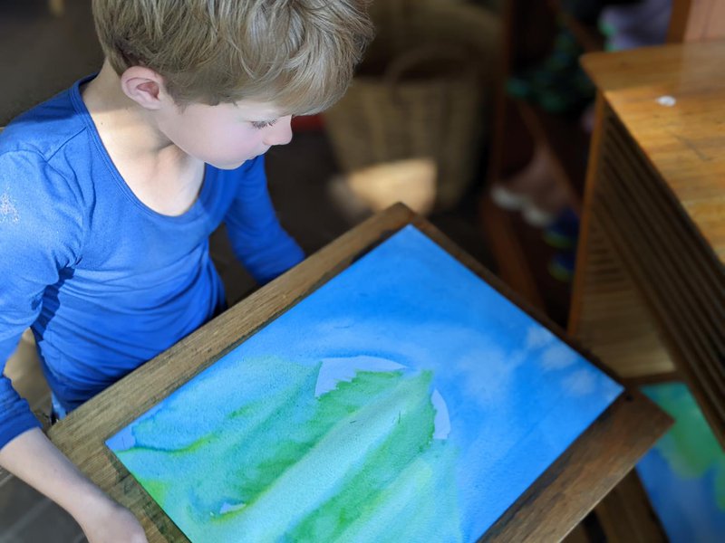 This week the children have created the most colourful drawings and painting in painting and drawing classes. Class 1 have drawn mountains and oceans with Class Teacher Jamie Loftus, whose beautiful chalkboard is in this edition of the newsletter. Class 2 focused on the intricate beautify of the wattles which flower on and around our campus at this time of year. Class teacher Prue Ritchie commented that each drawing is as individual as the children in the class! Both classes used the wet-on-wet painting that produces these beautiful images - Class 1 painting a beautiful sunrise and Class 2 deep green trees.