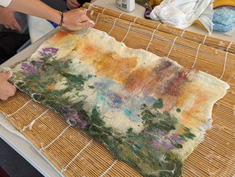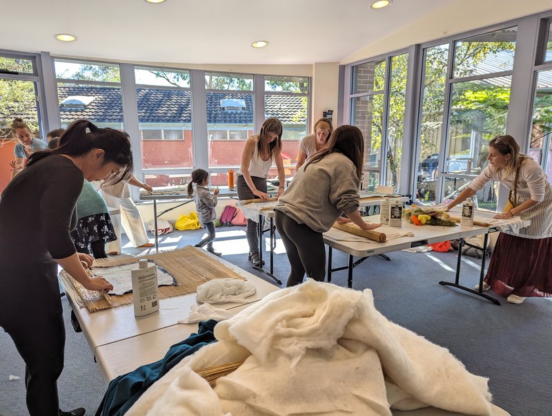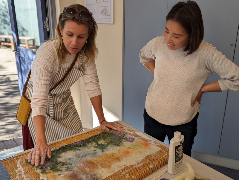 Parents had the opportunity to learn wet felting with Yuki Tomashima, a Glenaeon parent and incredibly talented felt artist. Taking soft fleeces and making landscapes and pictures, the felt is rubbed with warm water and soap and rolled until it melts into a felted piece. The images are wonderful and will be further worked into creative playmats, wall hangings and items for the school fair. Thanks to Yuki for this wonderful gift for our parents.