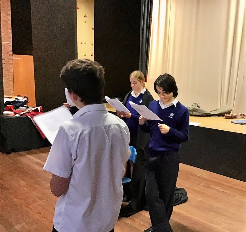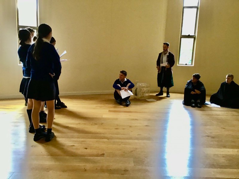 Last week, Year 9 and Year 10 students were treated to a ‘Play the Bard’ incursion of Shakespeare in text and performance. Professional actors Tommy James Green and James Hartley staged a satirical spoof of Shakespeare’s creative process in relation to the plays produced, in this case Macbeth and Romeo and Juliet, which led into workshops exploring features of Shakespearean language and aspects of performance. With a scene selected, the students workshopped how to use the stage and engage the audience from multiple angles with limited or no props. It is clear from the photographs that the students enjoyed the experience. David Green (English/HSIE Teacher & Tom’s dad)