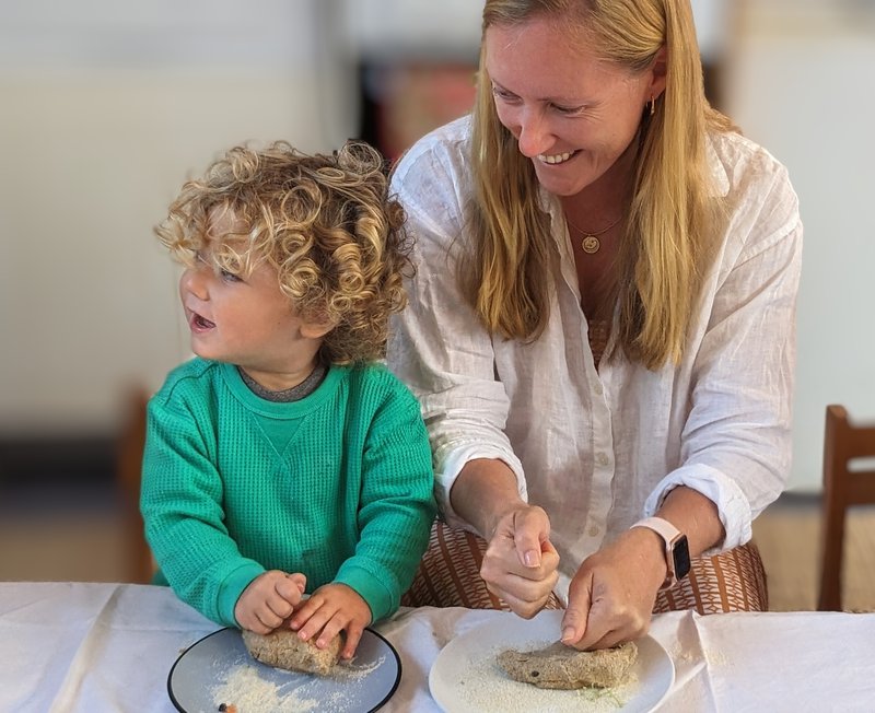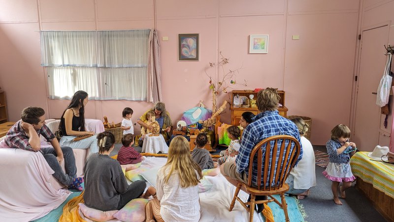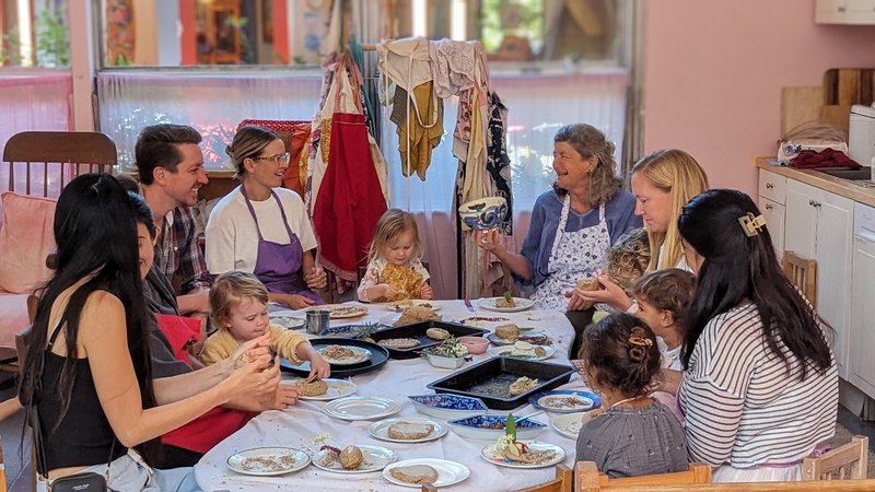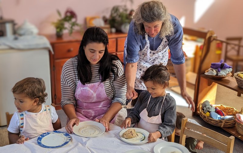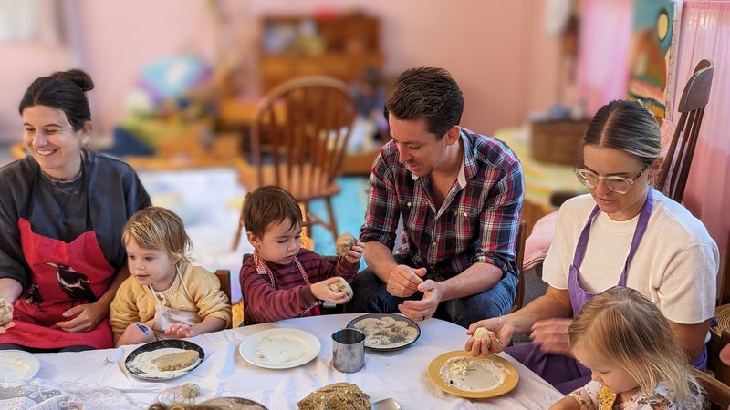 A peek below at Sandra's Wednesday morning playgroup at our Castlecrag campus. A morning full of celebrations for the changing season - nature table, story time, bread baking, conversation, little hands washing up and outdoor play.