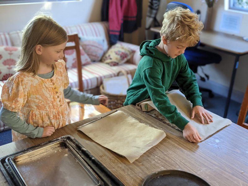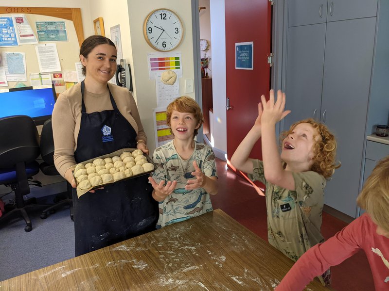 Last term Class 2 prepared bread and corn cobs for the whole of primary school on the morning of the Michaelmas Festival. Class Assistant Monique carefully calculated enough flour to make 180 rolls! She and Melony kneaded the dough with some Class 1 children before Class 2 children came in groups. Each child took part to further knead and form the many rolls that were baked to perfection. Can you spot the dough ball in the air?! The corn was peeled and the husks will be made into corn dolls. Class 1 volunteers decorated the Harvest display in the hall and the office was also brimming with lovely donations from school families - thank you. The food was all donated to Oz Harvest, who distribute it to charities to help feed people in need in Sydney.