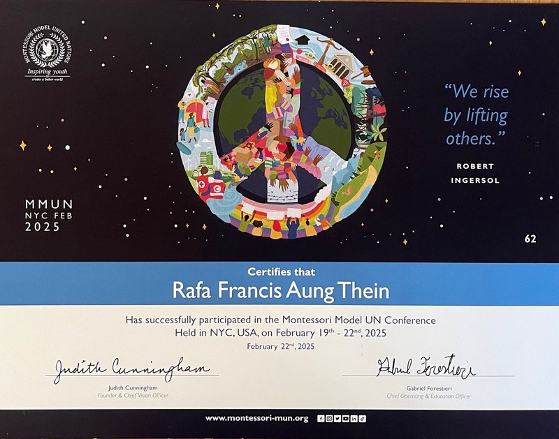 Congratulations to Rafa A. (Yr 8) for attending the Montessori Model United Nations conference in New York City. The delegates had their final session at the United Nations Headquarters General Assembly Hall. The solutions that have been proposed on current critical global issues will be presented as part of the consultative report to the actual UN General Assembly. What an incredible opportunity - well done, Rafa!