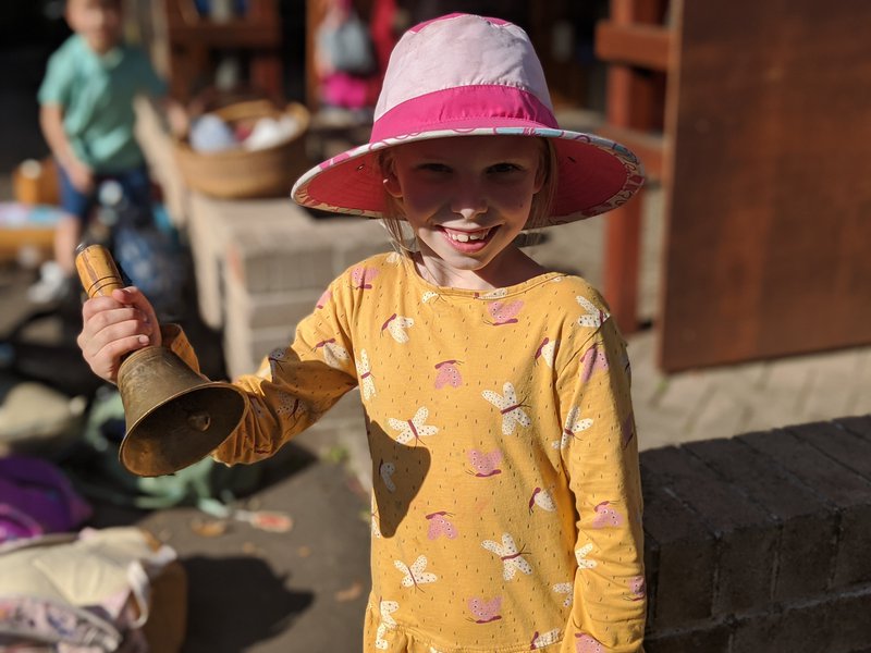 The sound of the old brass bell at Castlecrag is a happy sound, prompting children to run from the playground to their class balconies. Children enjoy taking turns to ring the bell, and occasionally even Kindy children find their way to ring its happy tune. It is such a lovely, friendly sound, and there is always a keen collection of children to run to get and ring the bell!