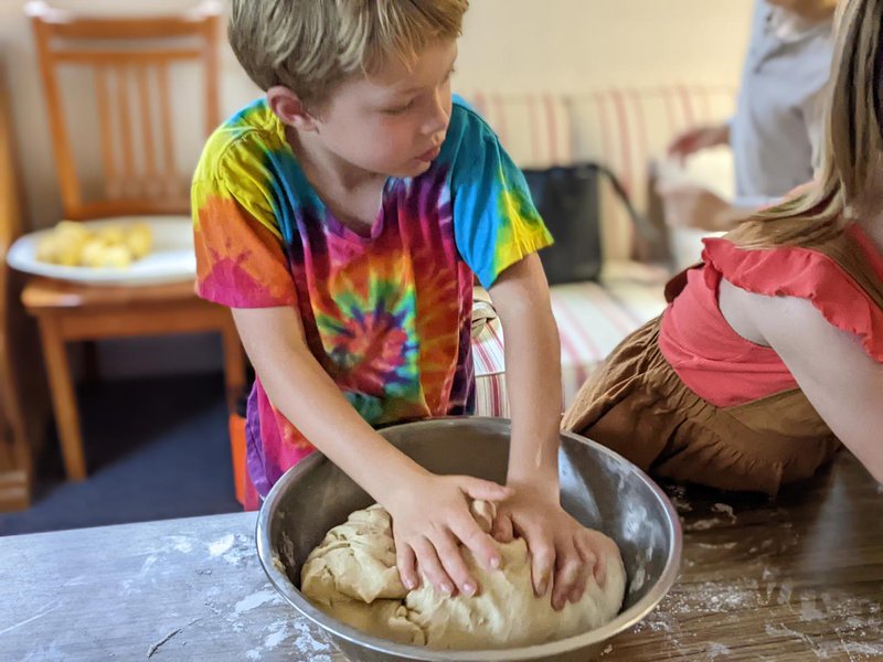 Class 2 prepared the Harvest food for the entire primary school - no mean feat as they mixed, kneaded and rolled their way to 180 bread rolls! Wow! Starting as early as 7am to get the bread dough mixed and rising, they spent the morning of the festival making and baking - three boxes of corn and bread rolls for all, which was happily even following the Michaelmas Festival. It was wonderful to be able to welcome back parent volunteers for this day. The recipe comes from the 'Kindy Bread' that many of the primary school children remember, so classes from Middle Cove especially enjoy this treat. Amazing work, Class 2! Thanks to Class 2 Assistant Olivia, our fabulous parent helpers, Melony and Clair Cisterne for helping to coordinate the morning.