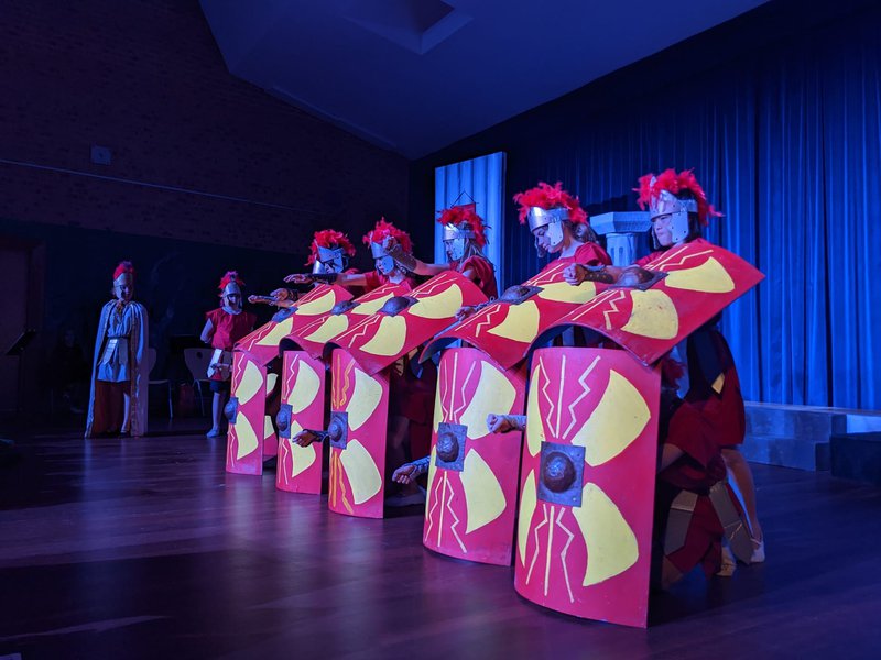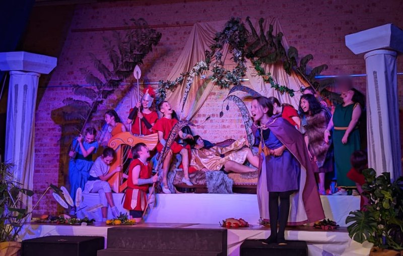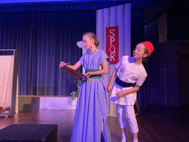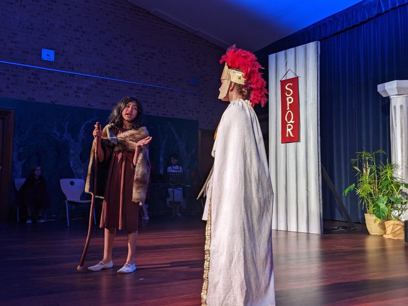 Class 6 performed their musical play ROMA AMOR this week to rapturous applause. They performed the clever and entertaining Roman romantic comedy to students, parents and friends and enjoyed a delicious Roman Feast afterwards. The story is set in Ancient Rome during the reign of Nero, and centers around a brother a sister's clever plan to trade places for a new life and to also be near their beloveds. Dressed in her brother Marius' armour, Lucrecia heads to the Roman Army whilst he stays and becomes a stonemason in the home of his beloved Sibia. The students played all of their own live music when not on stage themselves in a rich and engaging play that Glenaeon students are known for. Thank you Class 6 for this wonderful play!