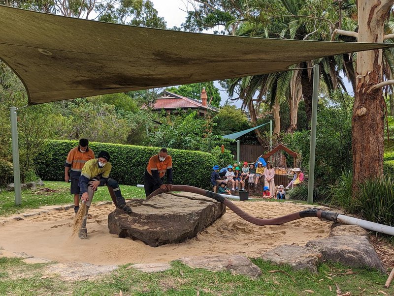 It was almost an all-campus affair when the trucks arrived to fill the sandpits with fresh, golden sand during outside play at lunchtime. Children watched with great delight as they pumped the sandpits full… which was followed by enormous fun in jumping, climbing, building and making ‘sand angels’, cakes and towers.