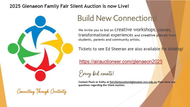 Auction items can be viewed in person at the Glenaeon Family Fair, 121 Edinburgh Road, Castlecrag, on Saturday 15 November between 10am-4pm.