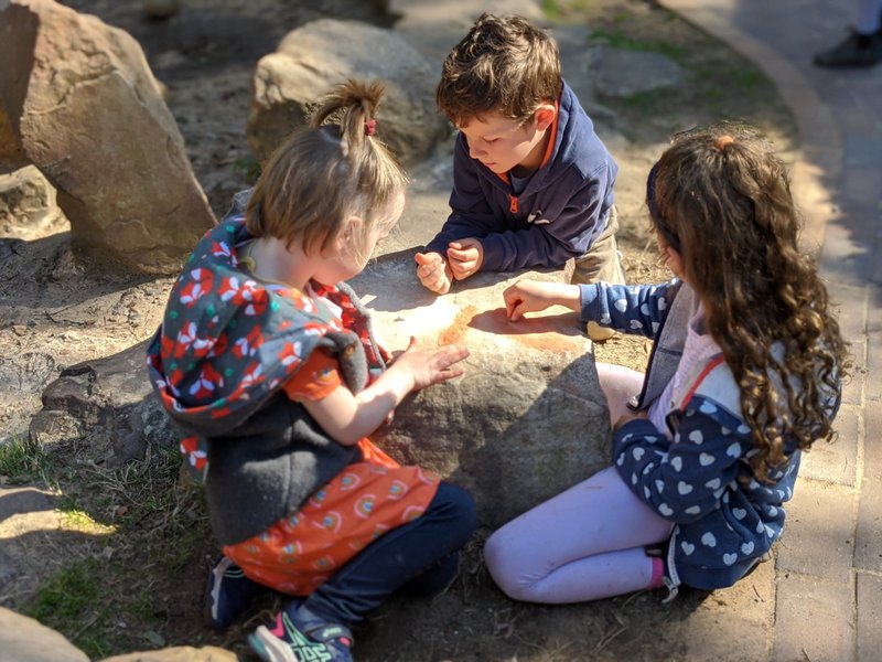 Spring has well and truly sprung at Castlecrag! The warmth is inviting, the sunlight is shining and the blossoms are blooming! The jasmine is in full flower and it's scent penetrates the campus. Spring nature tables are full of life and the children have been enjoying the Spring verses in preparation for their Spring Celebrations next week. Kindy children have been grinding the stones to make ochre paint in the playground.