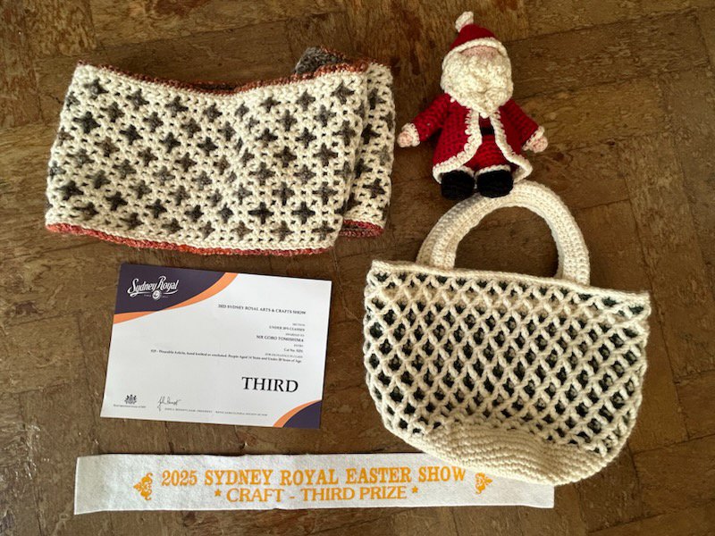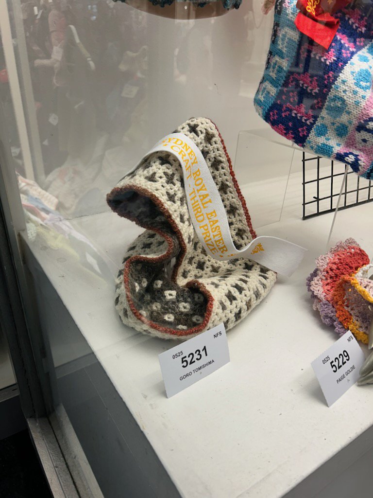 Goro T. also entered three crafts pieces and he won one prize - Third prize - Wearable article, hand knitted or crocheted.