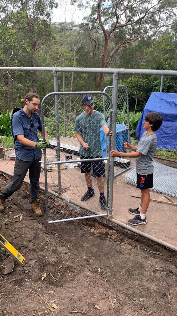 On such a hot and humid beach-type of day, Lisa Lewis replenished garden beds by wheelbarrowing the mountains of earth excavated by the Year 9 students for a moat-like trench that will keep rainwater from flooding the new coop. From the first sod turning on Saturday, 23 December 2023 to ‘last walls clipped in place’ by Glenaeon Staff member Kai Schaefer on 12th January 2024: WE NOW HAVE AN ENCLOSURE in which to host our forthcoming feathered friends!