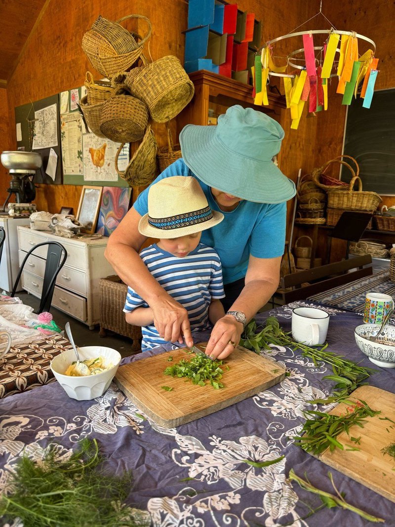Our annual Harvest Gratitude day, as celebrated last Sunday at Middle Cove, has become a working bee of sorts as the Glenaeon community comes together to learn from each other. We felt the benefits of healthy living soils by plunging our hands in them; we harvested what had grown out of flourishing garden beds; we created a bountiful feast, and together, we planted new gardens for bees, animals and humans too.
