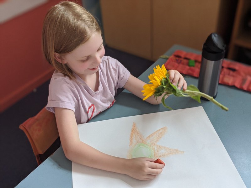 Class 1 has been exploring the life cycle of sunflowers, from seed to germination, growth, flowering and harvesting with teacher Prue Reid. Students have dried and now eaten the seeds, saving some for planting again next year. Exploring a story and poem about sunflowers, they created beautiful artwork after looking at the living and dried plants. We have all enjoyed the glorious sunflowers growing and blooming in the Castlecrag gardens.