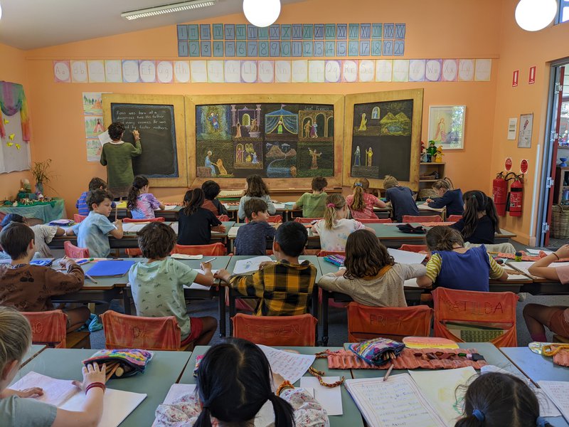 Regular working bees of teachers and parents continued with more painting, renovating and landscaping. Within a year or so, two parents in the high school (Tom Renton a builder and Rod Dixon a dentist) came to lead a series of working bees that built the “creek”, the fountain and flowform in Kindergarten. A few years later a series of working bees built the large “fort” in the primary area of the playground. So the “little” campus gradually took shape and grew into the beautiful and idyllic centre of Steiner education that it is today.