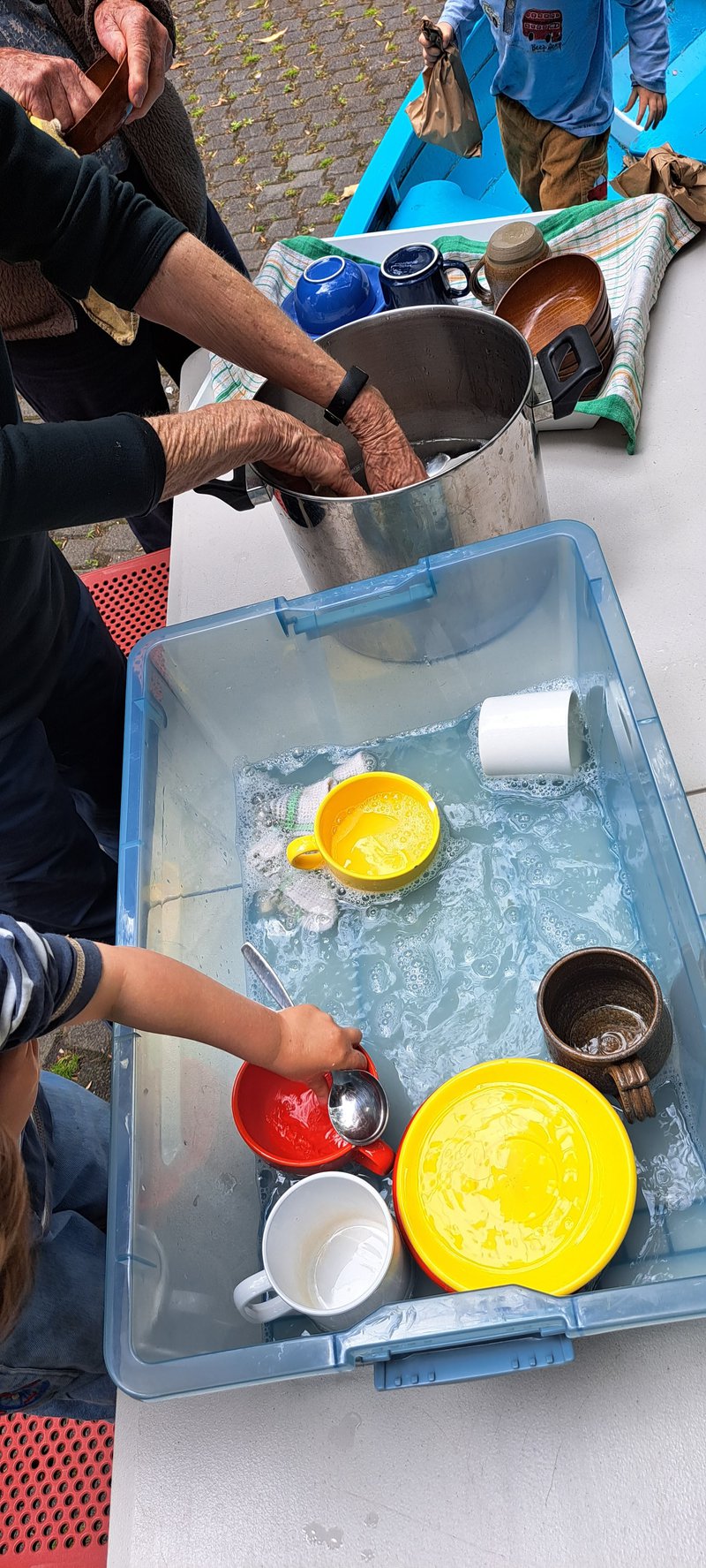 Natalie Choo's lovely Monday playgroup at our Willoughby Campus enjoy the preschool playground and a bush kitchen. This is an activity for all ages where little ones imitate the fun and care of washing up together after a nourishing morning tea.