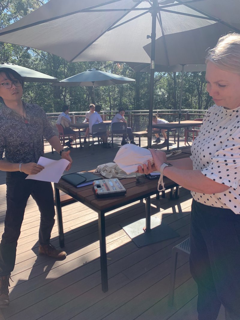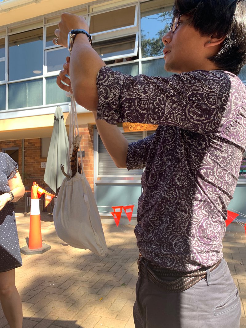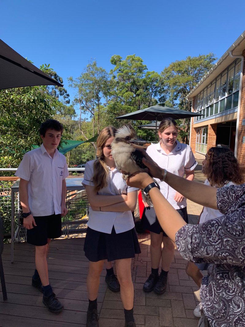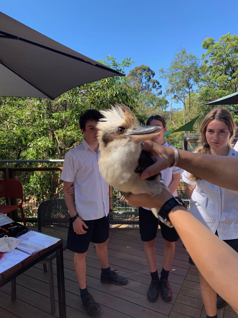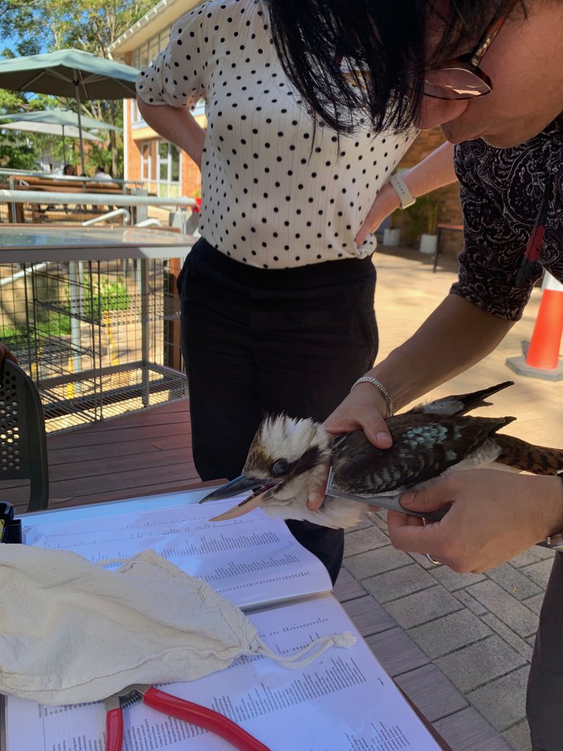 School staff were startled by the loud chortle of a “bushman's alarm clock” a few weeks ago, and discovered that Science teacher Dr Stanley Tang had captured a Kookaburra casually sitting on the Cafe Deck fence post. Stanley recorded the bird’s details as part of his research project taking place on the grounds of our Middle Cove campus. Students assisted in the recording of the birds details for the study. Our Enrolments Registrar Chandra Kennedy held the bird for Stanley as he wrote up the findings. The noisy Kooka was set free shortly after and happily returned to its favourite branch on a nearby gum.
