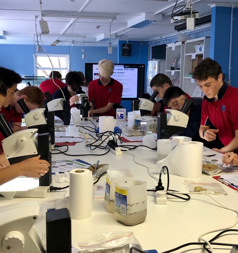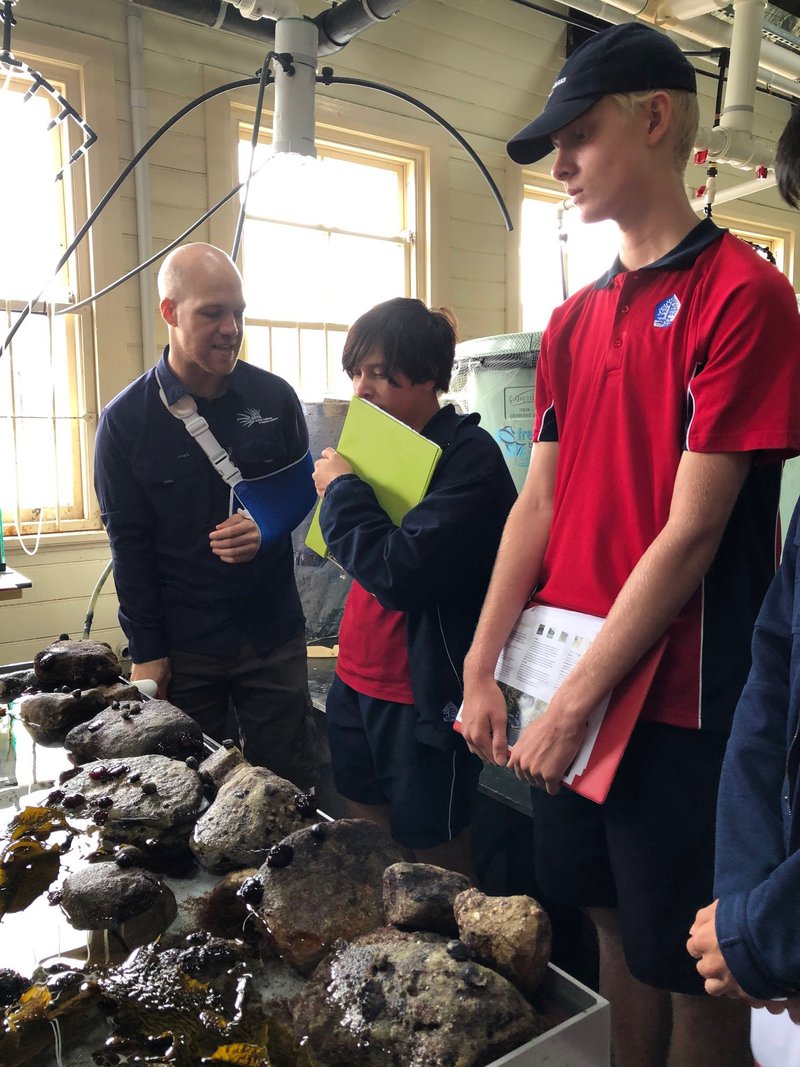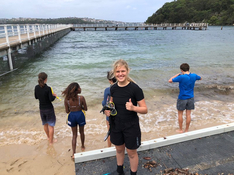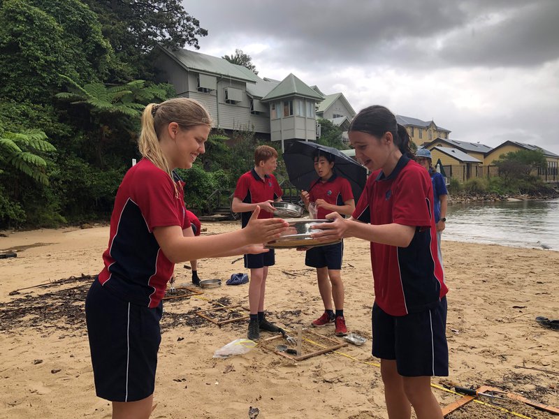 Year 10B Geography were welcomed to The Sydney Institute of Marine Science (SIMS) in Chowder Bay, Middle Head, to investigate some of the environmental changes that have taken place in the Sydney harbour estuary. They cheerfully braved the morning rain and sieved beach quadrants for examples of large plastics and then gathered sand samples to test in the SIMS laboratory for microplastics under the guidance of the SIMS scientists. The students were taken into the SIMS aquarium and given a hands-on display of the biodiversity of marine life in Sydney's rocky shore habitat. They then donned wetsuits and with the guidance of Outdoor Education Teacher Kristen Gardner the students explored the netted area of Chowder Bay where they observed the sea grass and some of the diverse marine life in their natural surroundings.