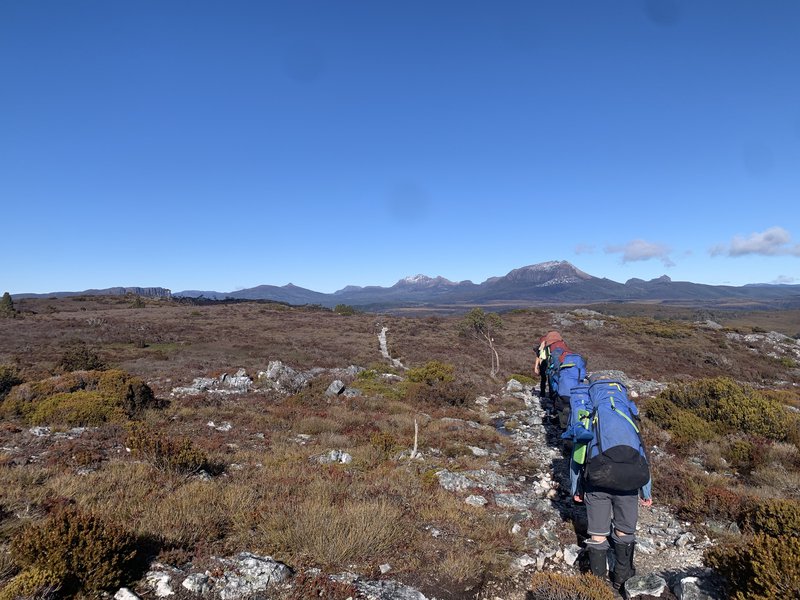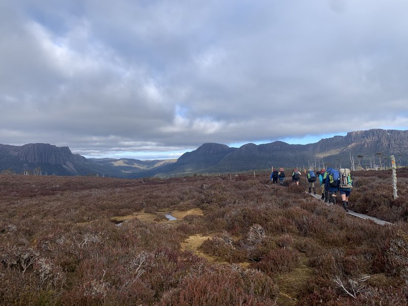Walking the Overland in winter is no small feat, and our Year 10 students took to the challenge. They embraced the cold, sustaining wet feet, and icy fingers from packing up a tent. They carried everything they needed for eight days and still managed to share some chocolate around on day seven! We encountered wombats, paddy melons, quolls, and birds to name a few, as well as meeting the many other travelers who also braved the elements to wonder through a place of beauty.