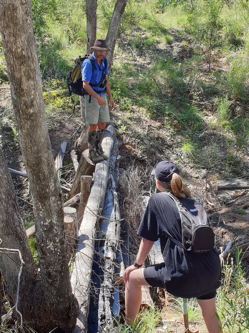 After lunch we set off for our land care tasks which was to help prevent erosion and scouring by using wood off-cuts in one of the creeks to slow the water and stabilise the creek bed.
